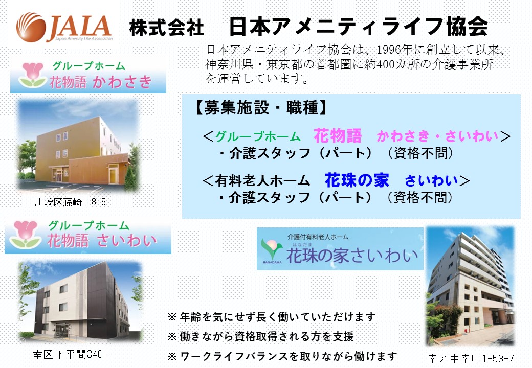 介護スタッフ(パート)/(グループホーム:花物語 かわさき)