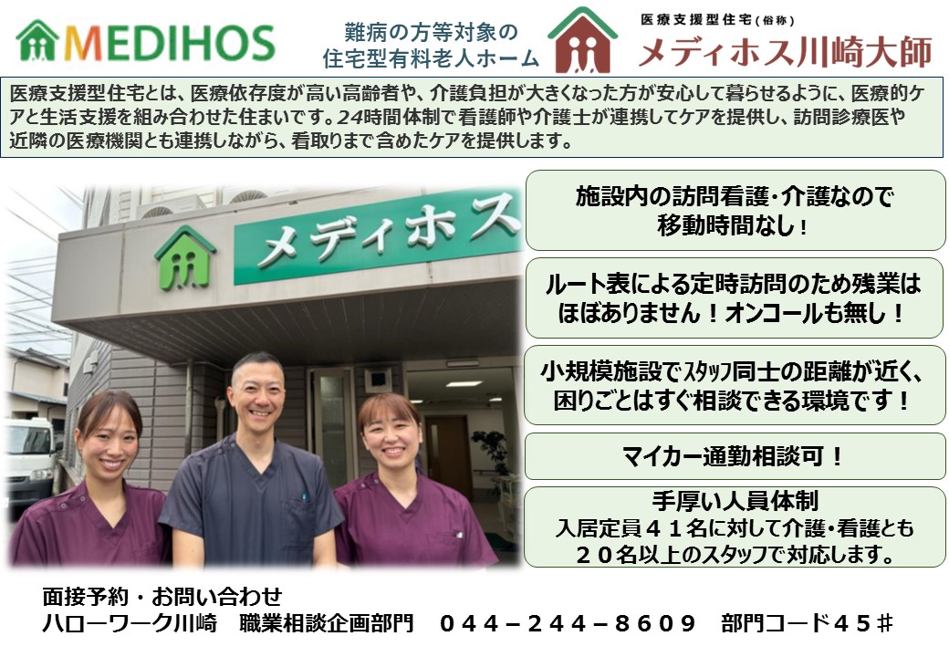 または下記の問い合わせ先に電話をしていただき、「12/17メディホス応募面接予約をしたい」とお話しください。