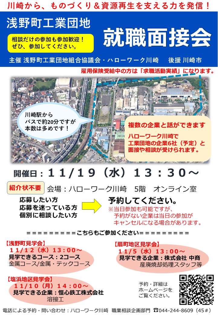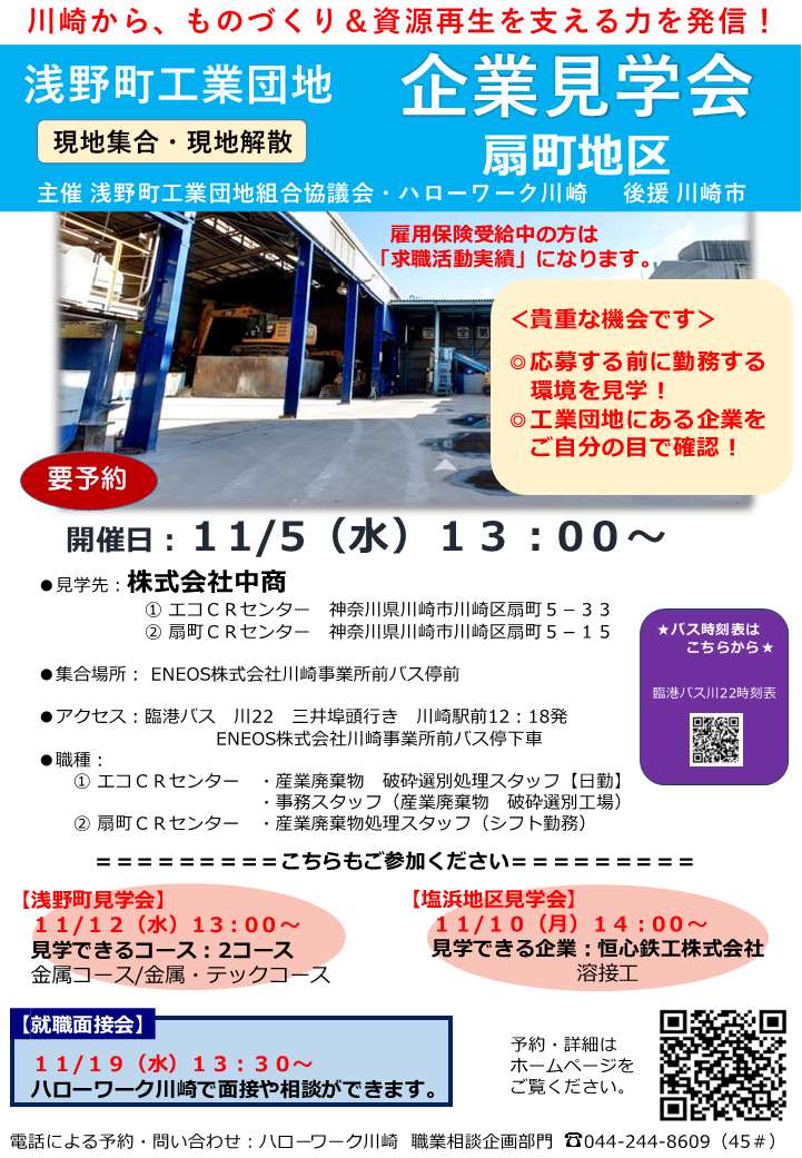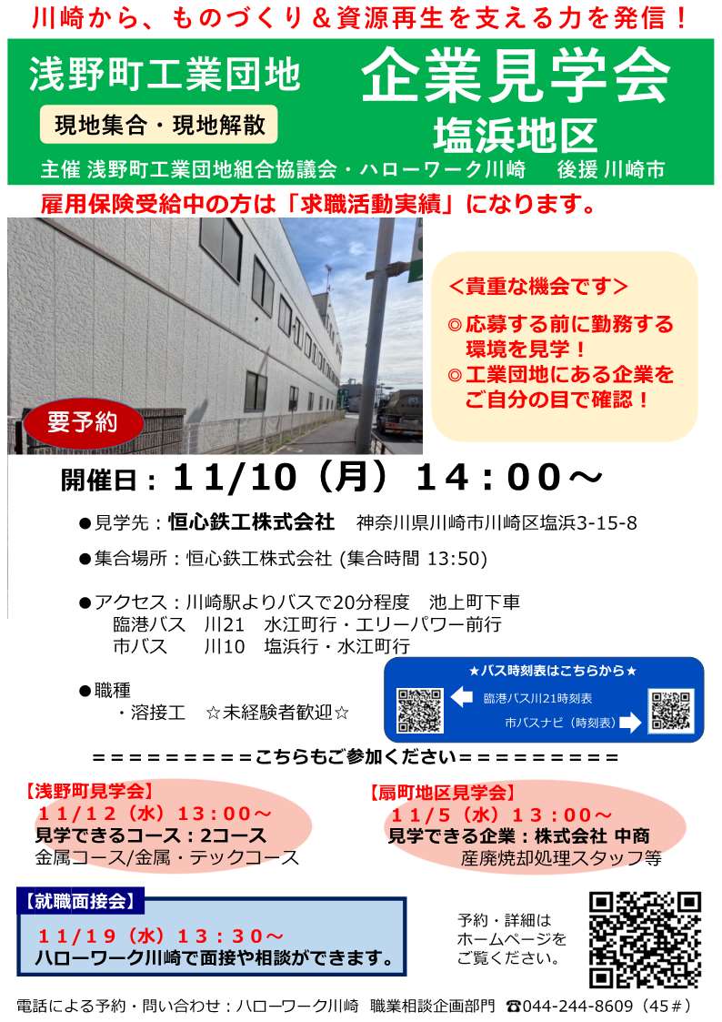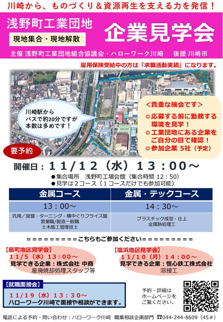 ハローワーク川崎 浅野町工業団地 企業見学会・就職面接会