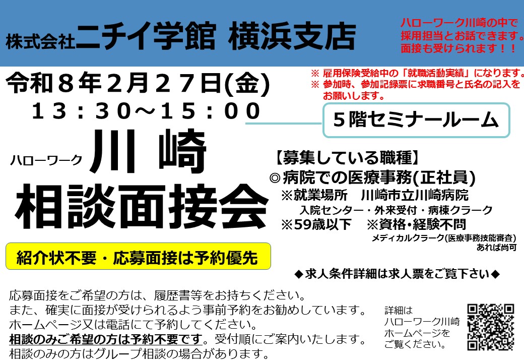 ハローワーク川崎にて実施します求職者向けイベントの紹介ページです。