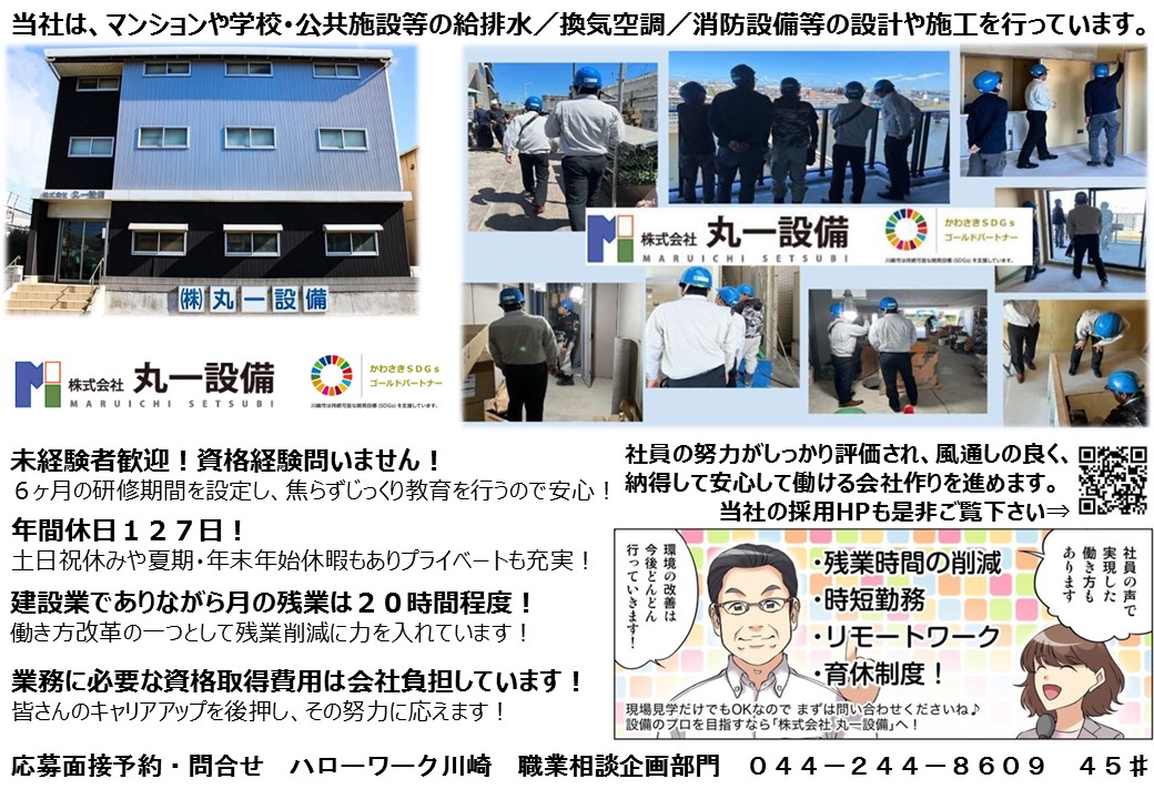 ・給排水設備、空調設備、消防設備の施工管理/正社員