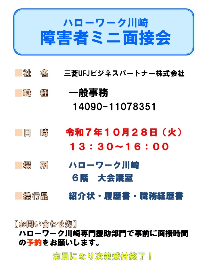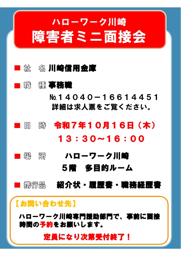 ご案内はコチラ→「かわさき障害者面接会」リーフレット