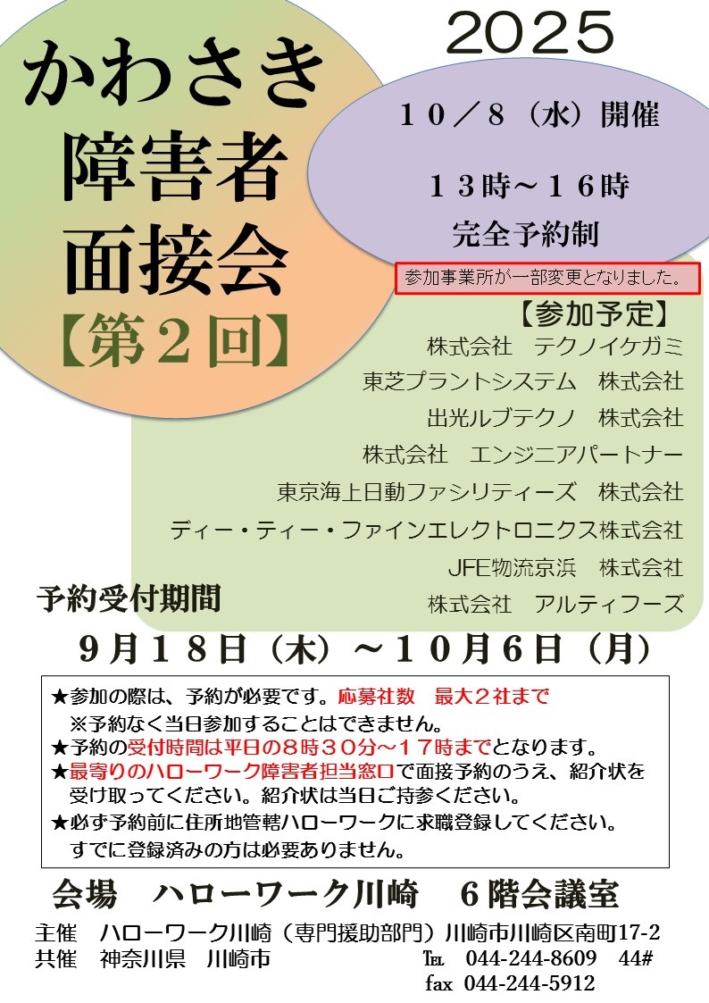 【第2回】かわさき障害者面接会を開催します!