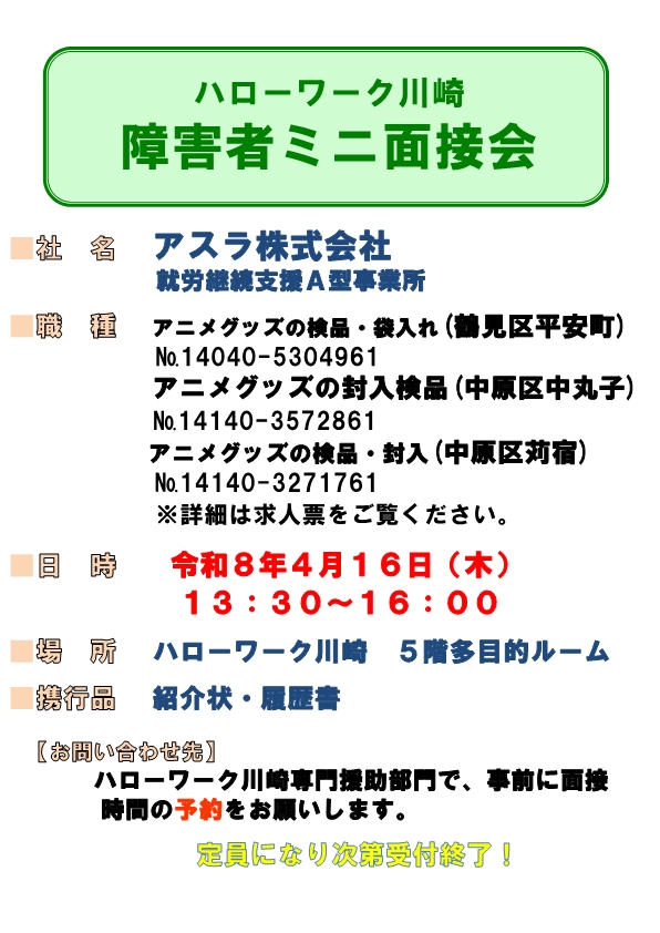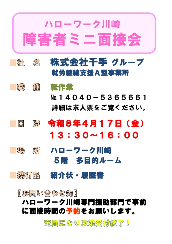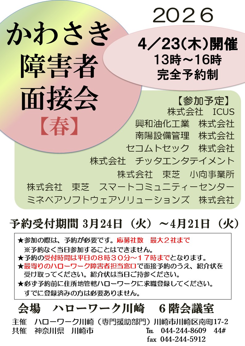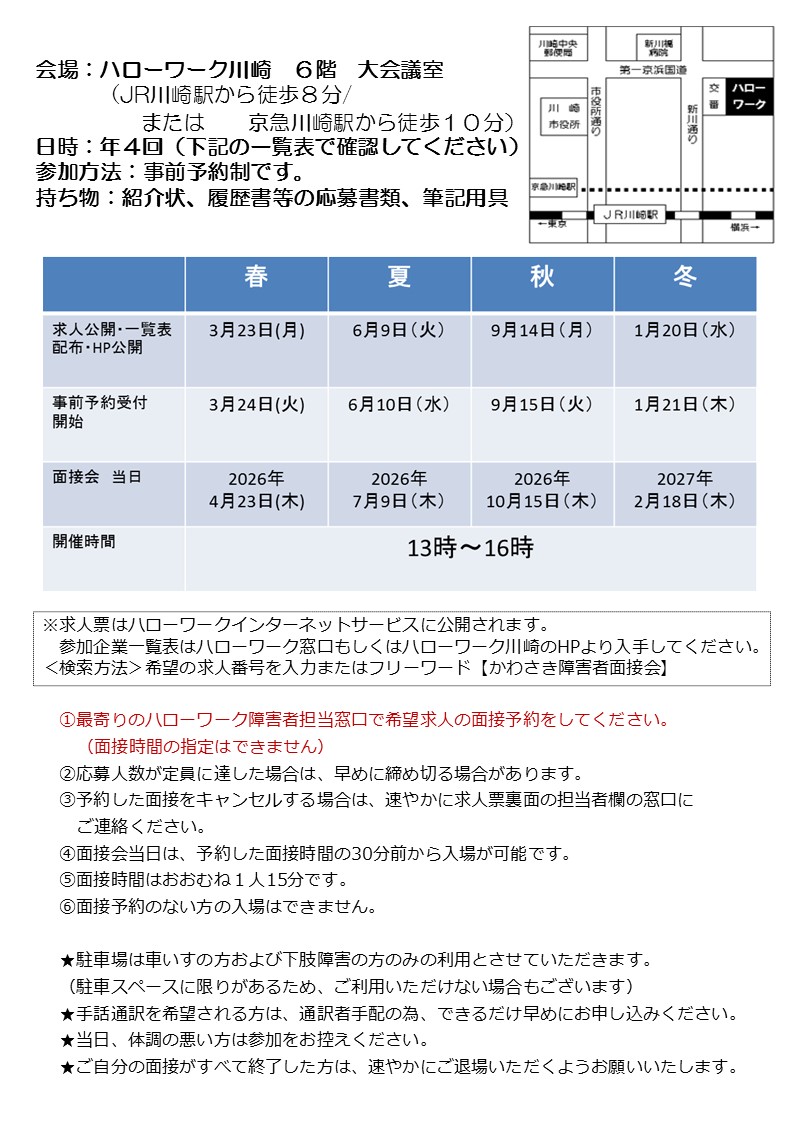 2026 かわさき障害者面接会【春】開催のお知らせ
