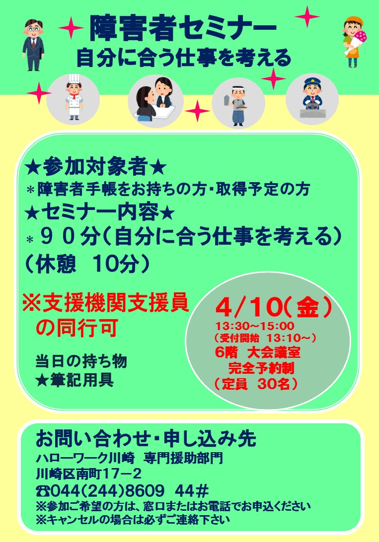 ★障害者セミナーのご案内★(自分に合う仕事を考える)