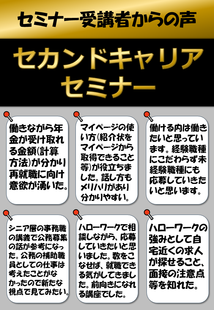 2. ハローワーク川崎北>お仕事をお探しの方>過去のセミナー受講者の声
