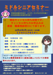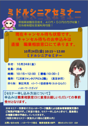 ☆就職支援セミナー応募書類の作成や面接対策等、基本的な求職活動のノウハウについてお伝えするセミナーです。中高年の方向けのセミナーや雇用保険受給者の方向けのセミナーを実施しています。