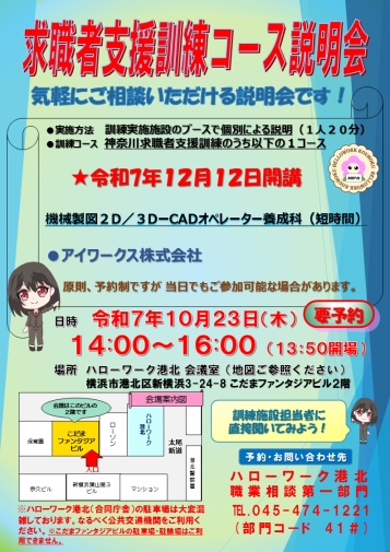 ★横浜市中央職業訓練校の方から直接お話が聞けます★