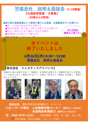 「警備会社 相談&面接会」を令和7年6月26日に開催いたしました(参加企業は(株)ゼンコー/(株)ジャスティスアドバンスの2社)。