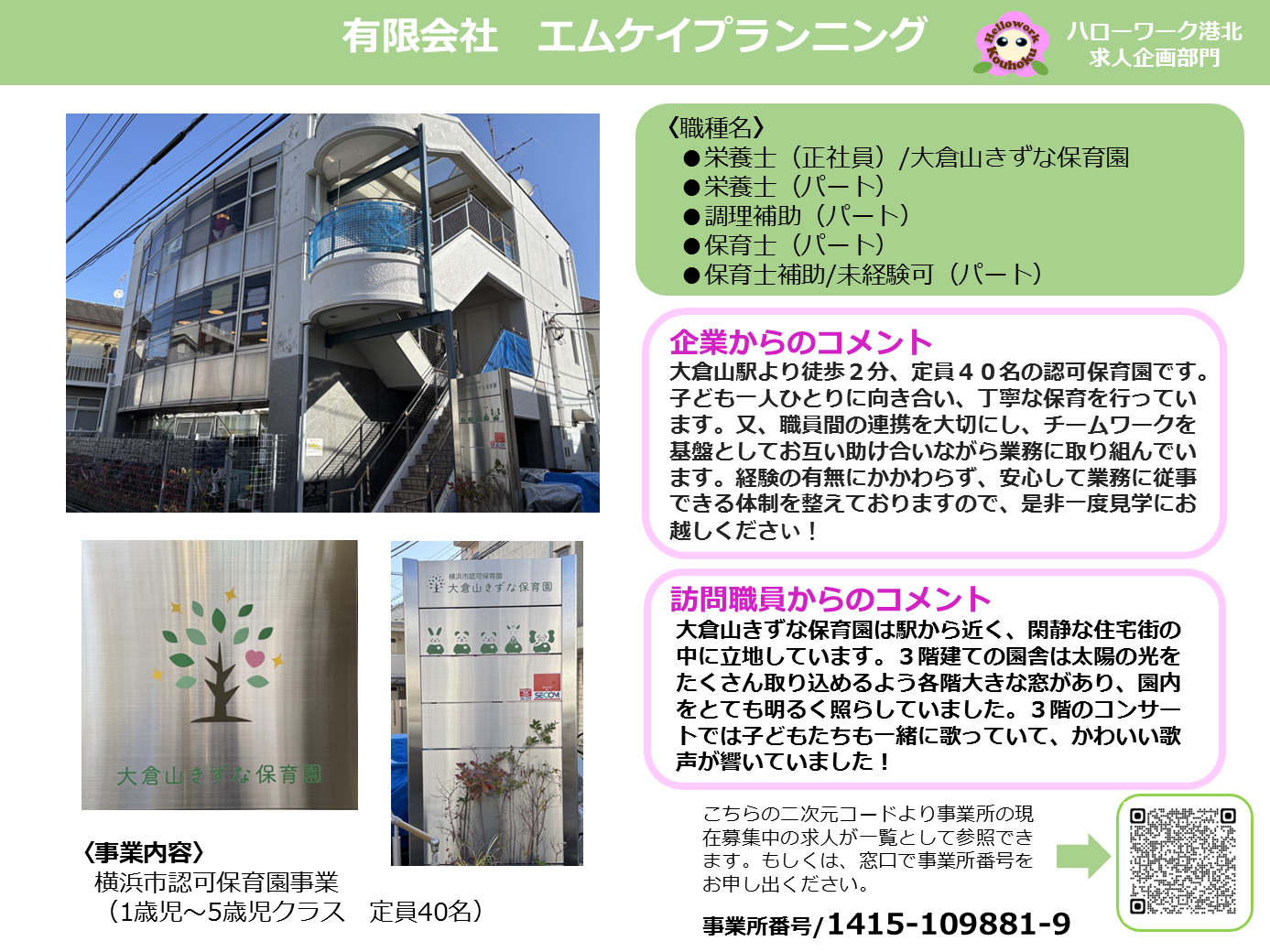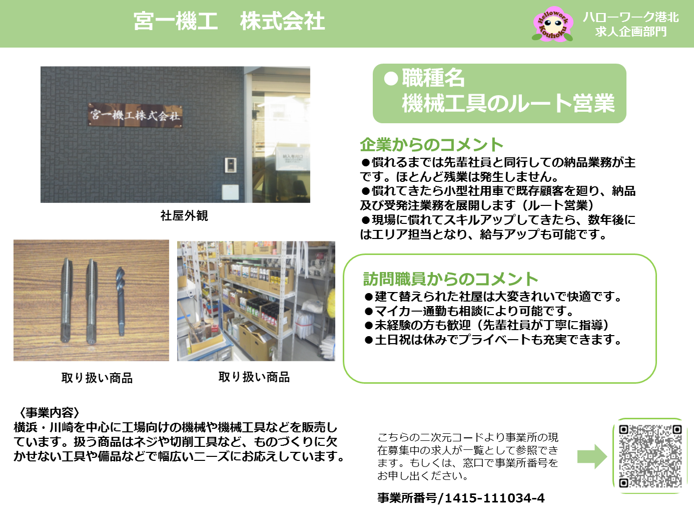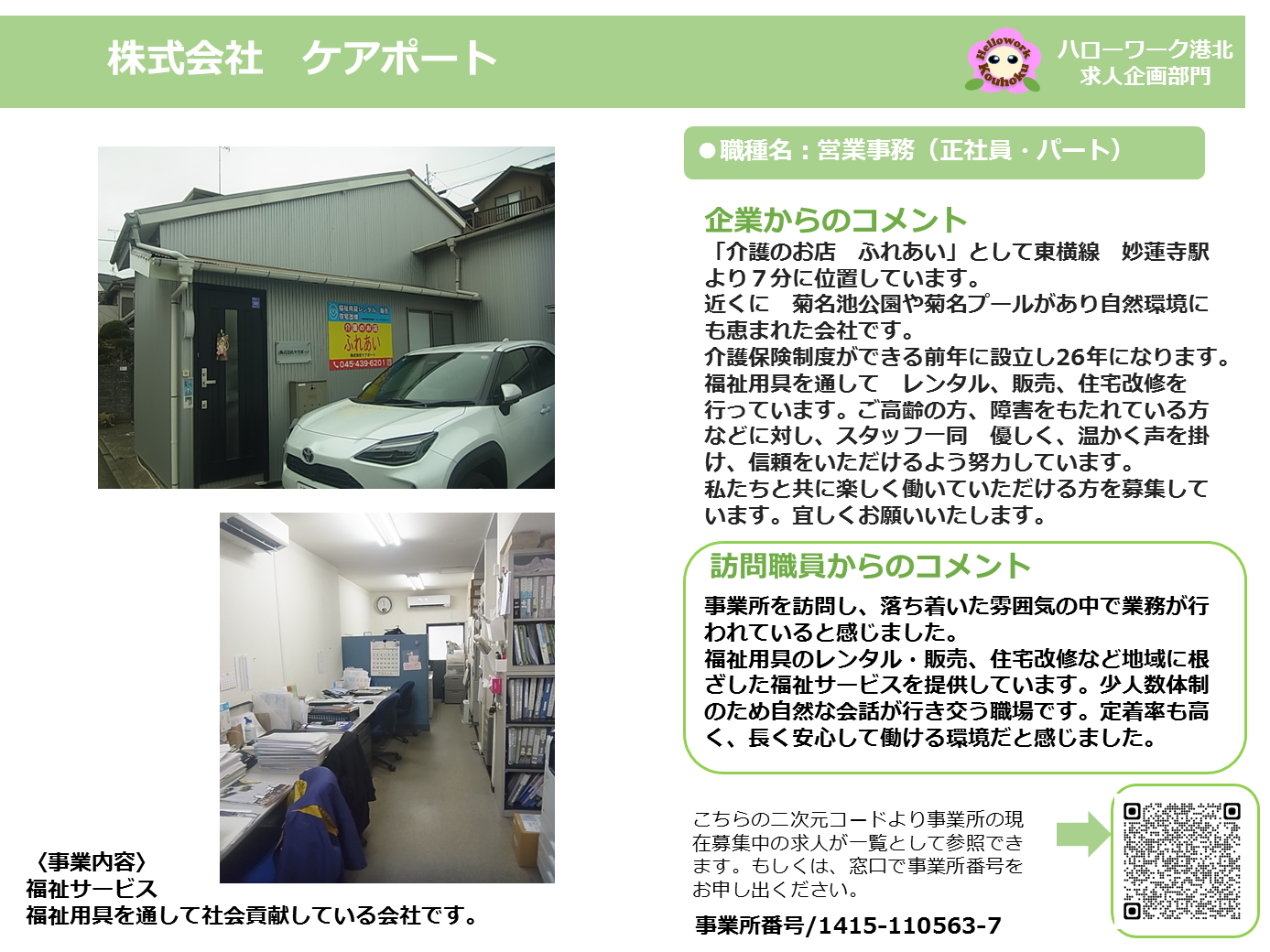ハローワーク港北では、求職者の皆様により求人の魅力をお伝えするため、事業所訪問シートを掲載しています。是非ご覧ください。