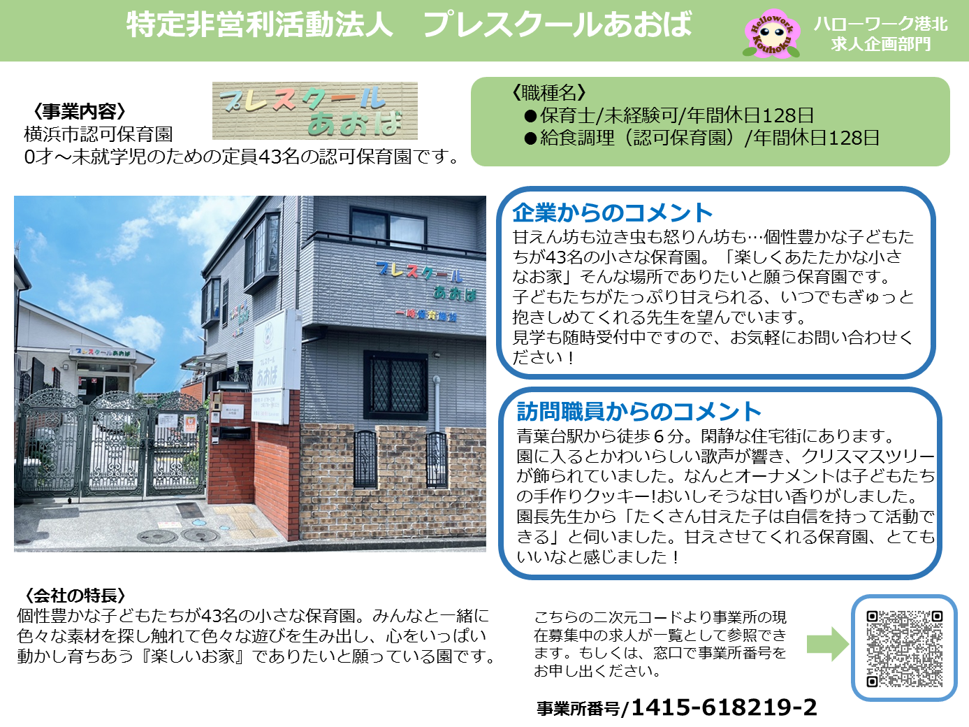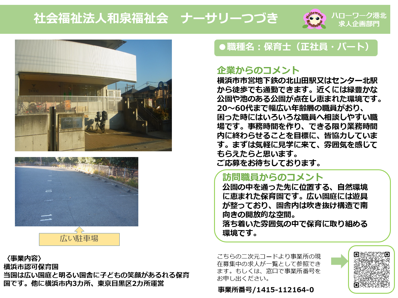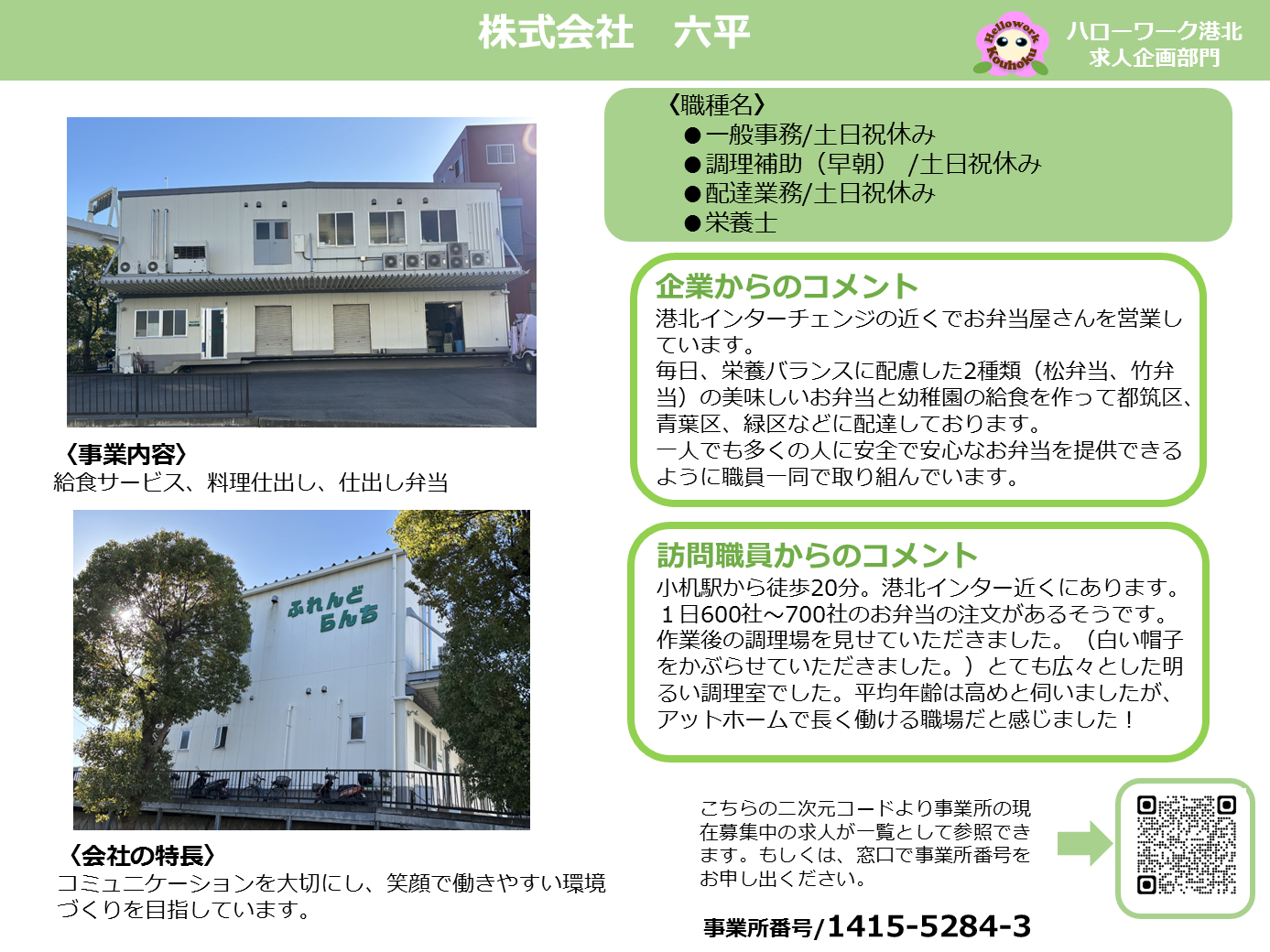 ハローワーク港北では、求職者の皆様により求人の魅力をお伝えするため、事業所訪問シートを掲載しています。是非ご覧ください。