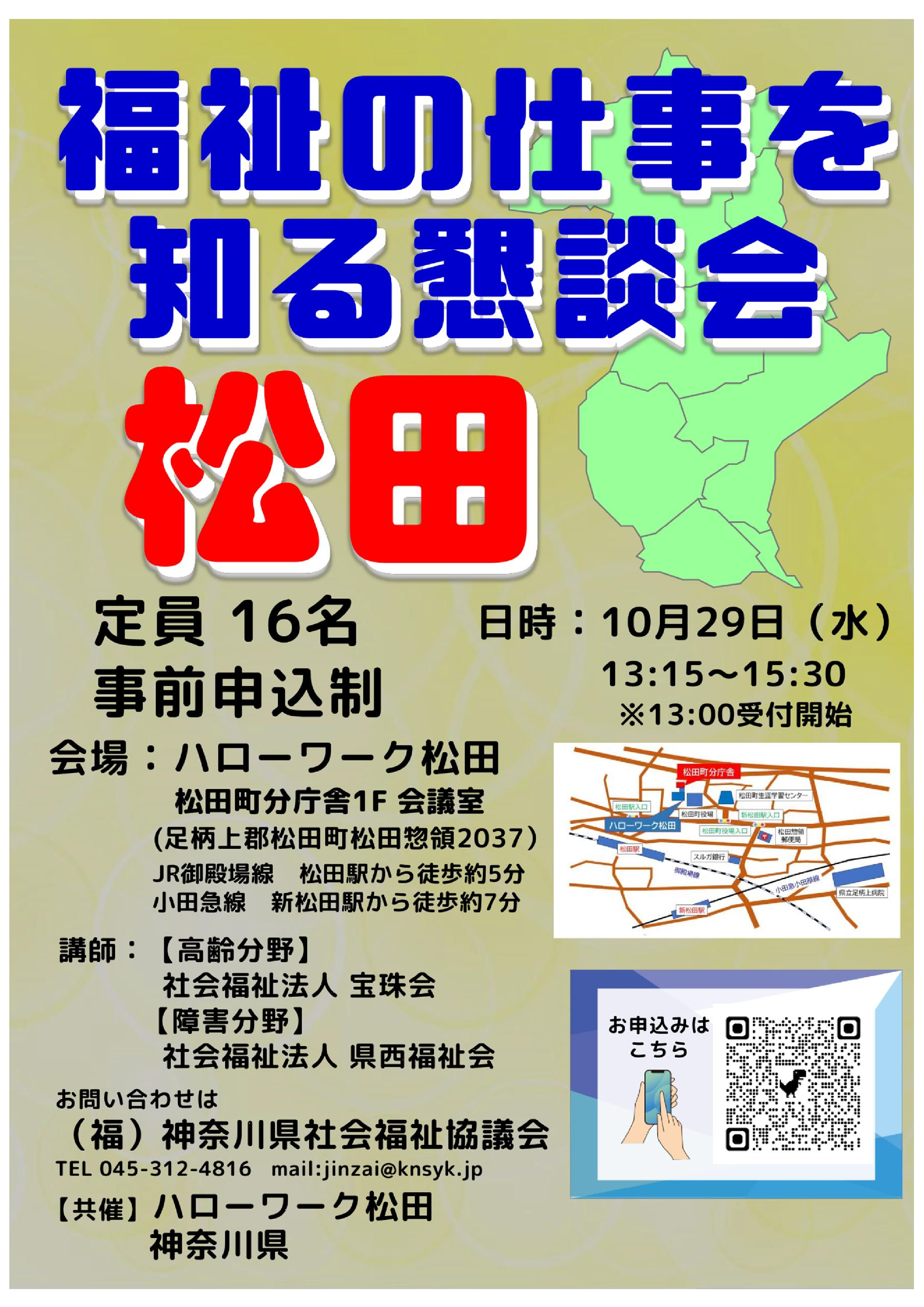●9月26日 10月29日(水)開催「福祉の仕事を知る懇親会」の参加者の募集を開始しました。