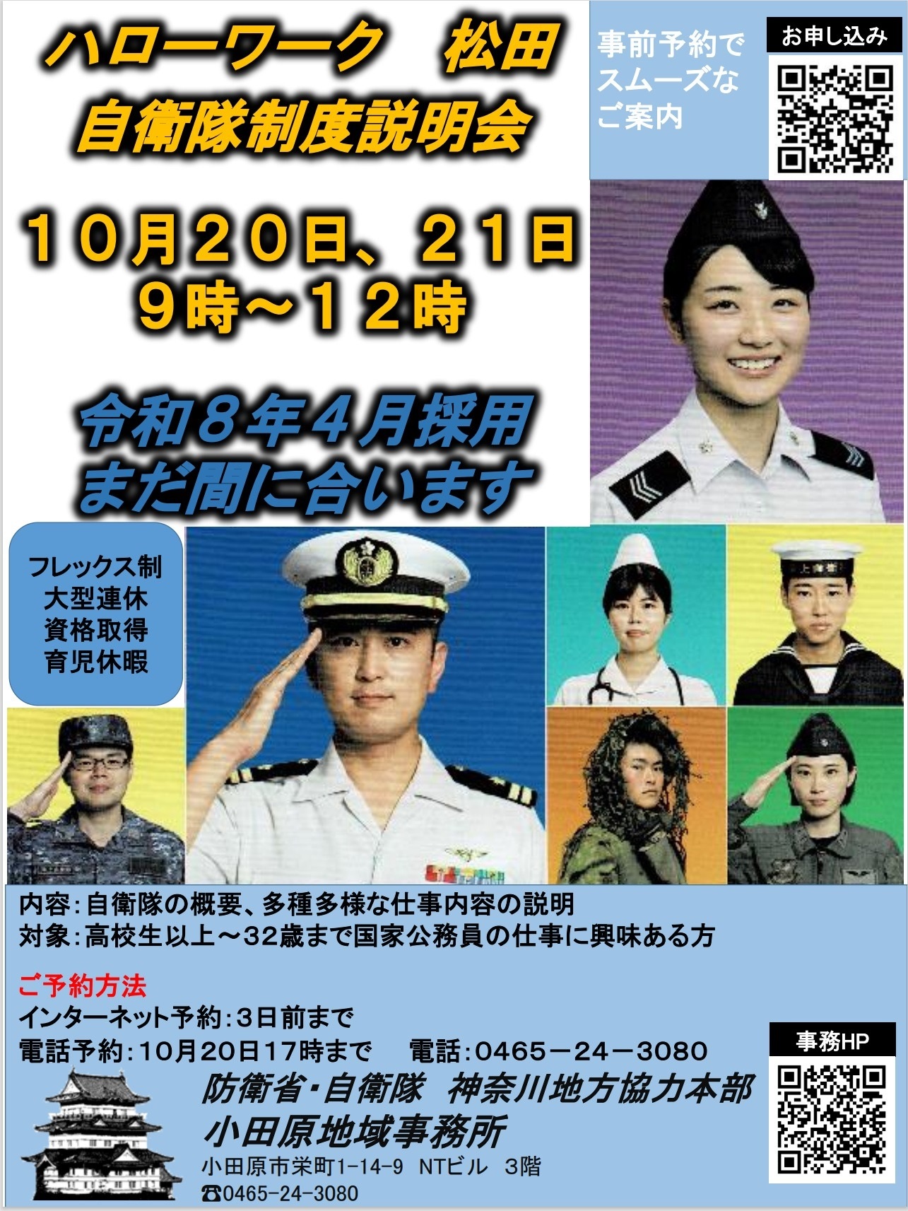 🔹お問い合わせ:防衛省・自衛隊 神奈川地方協力本部 小田原地域事務所
