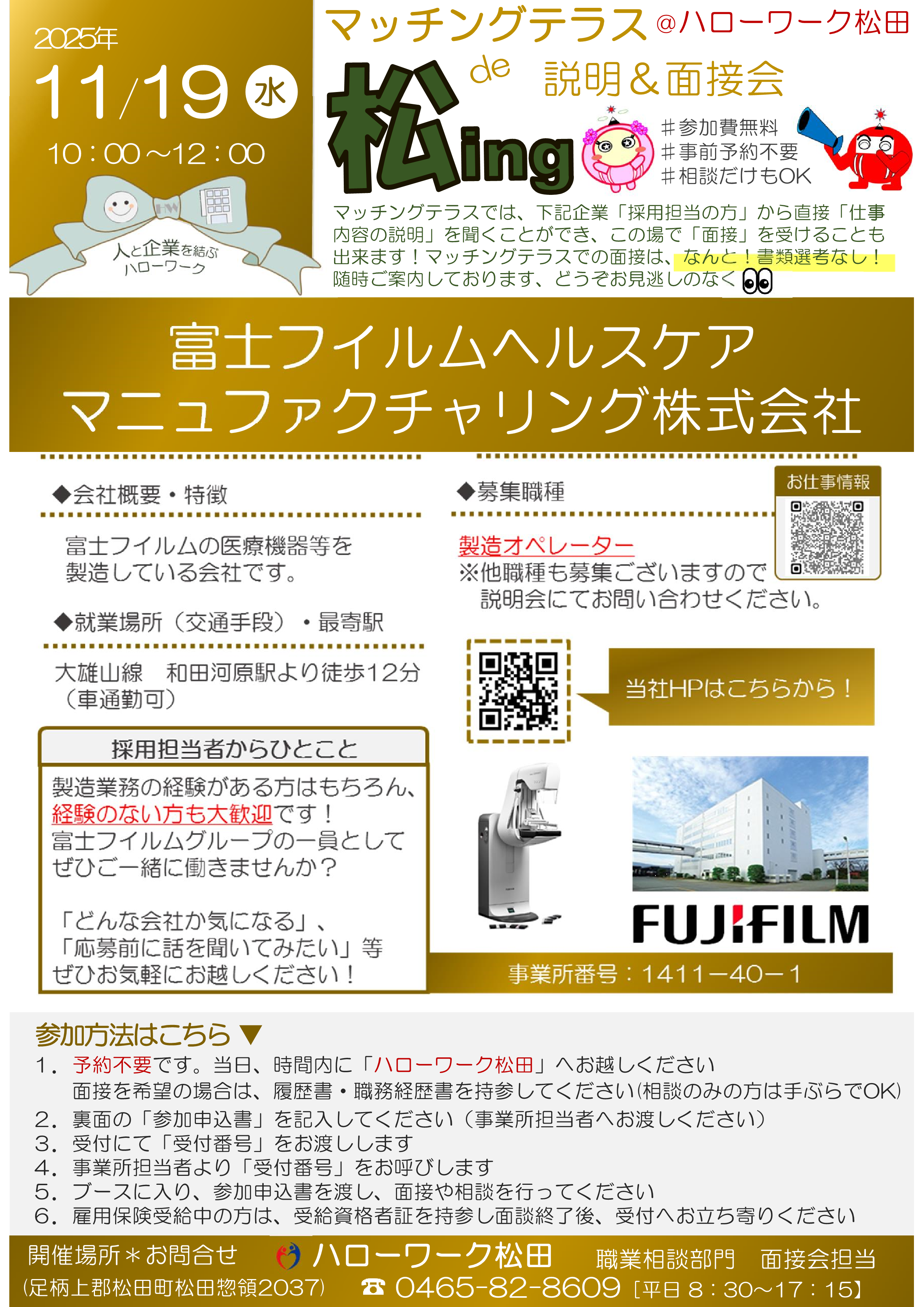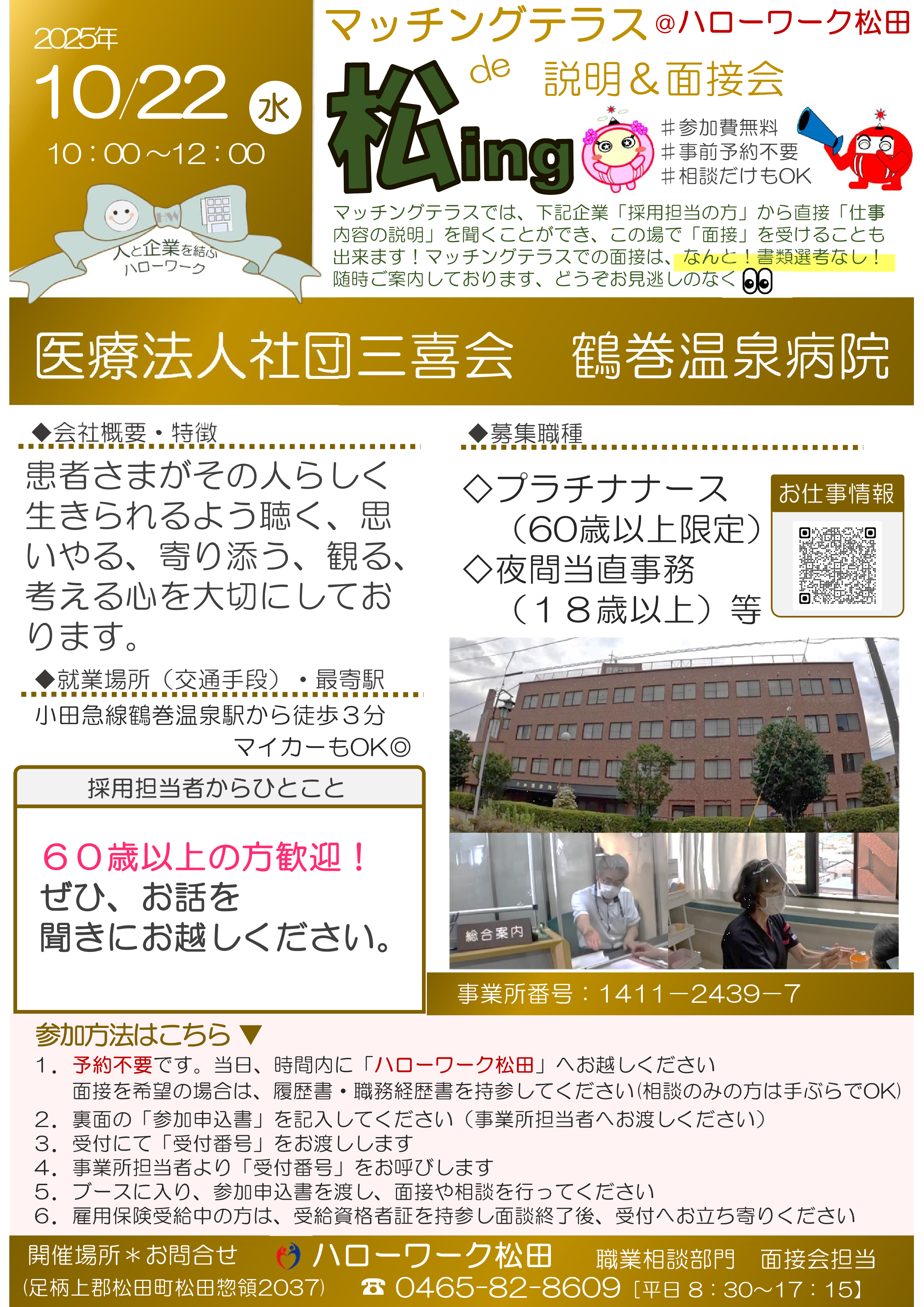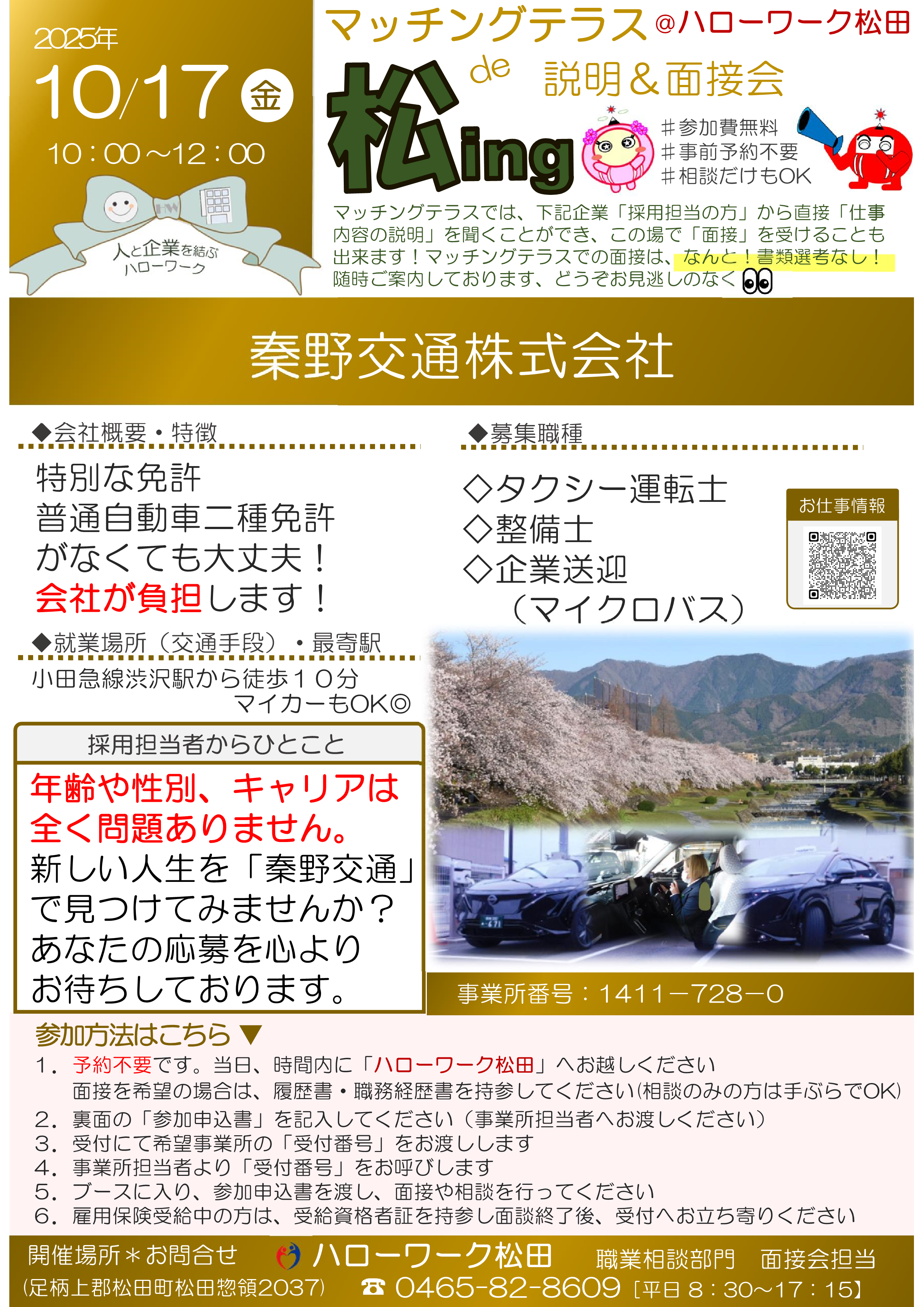 🔹お問い合わせ:ハローワーク松田 (職業相談部門 面接会担当)