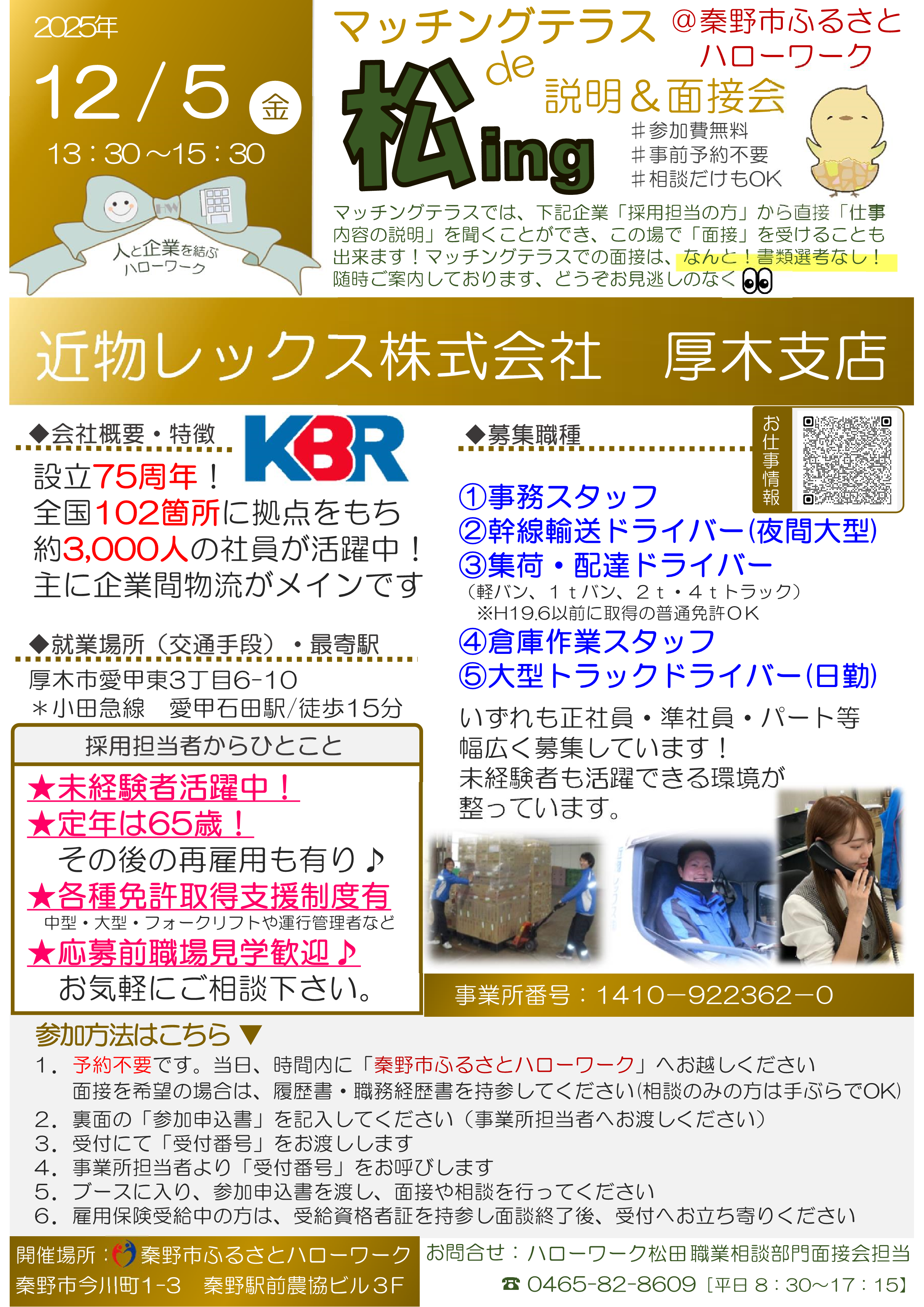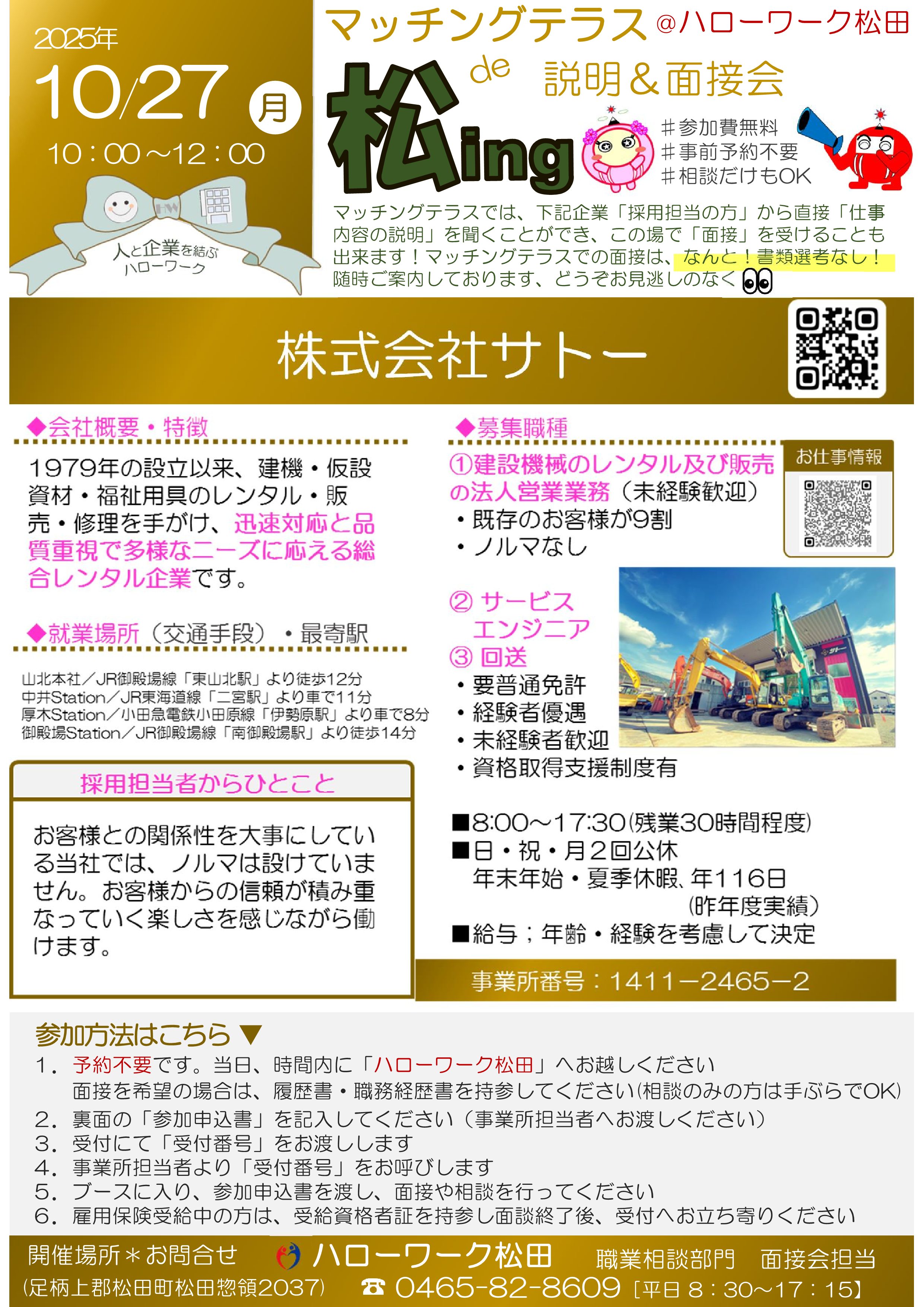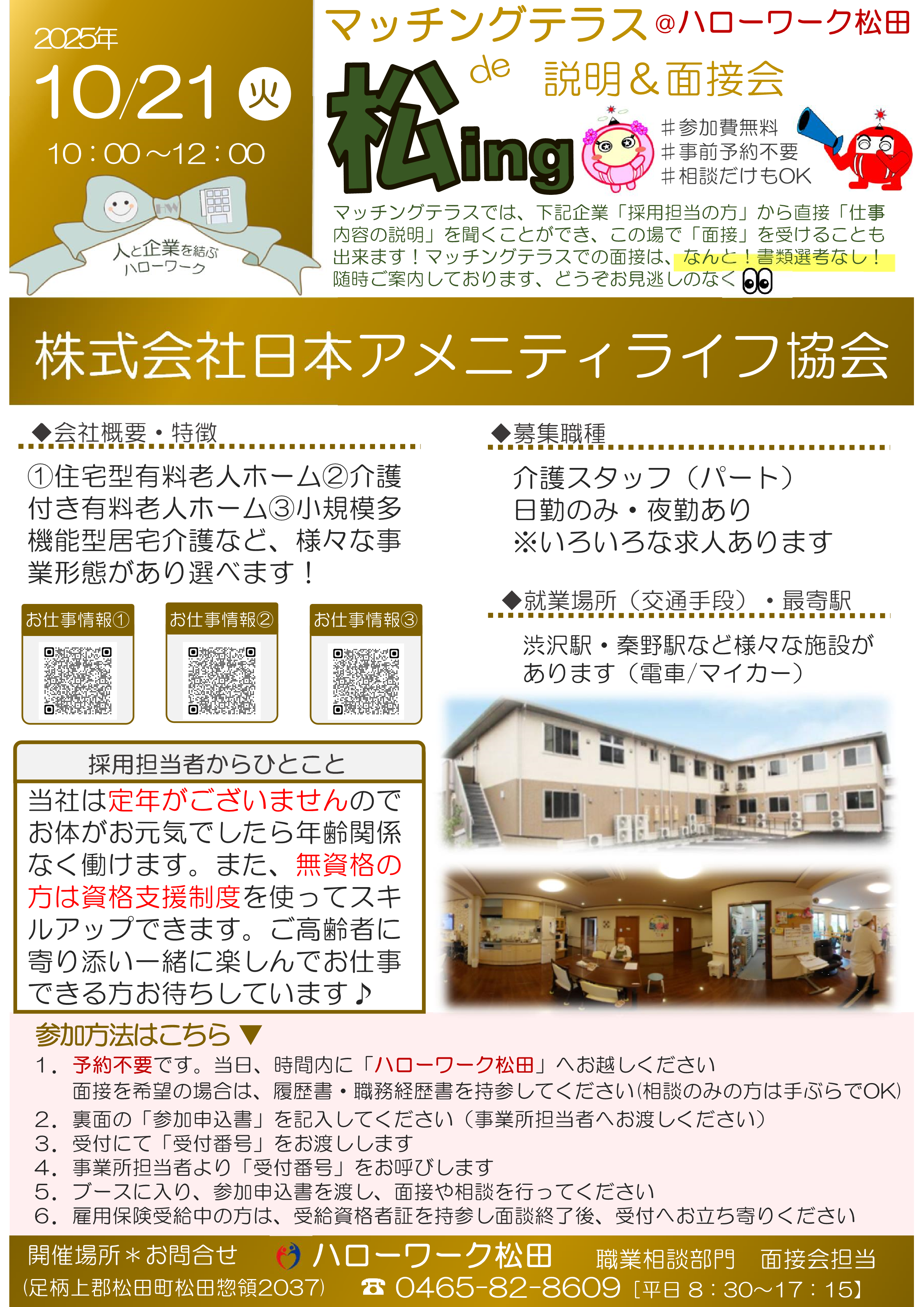 🔹お問い合わせ:ハローワーク松田 (職業相談部門 面接会担当)