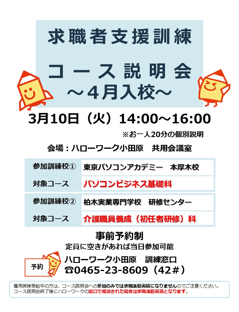 ハローワーク小田原 職業相談部門 訓練担当