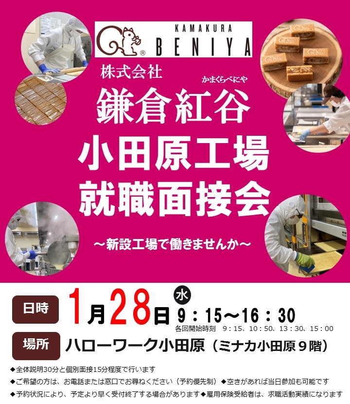 ◎株式会社 鎌倉紅谷 小田原工場 就職面接会(1月28日)