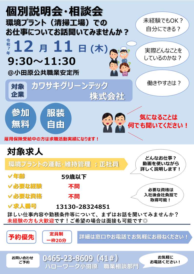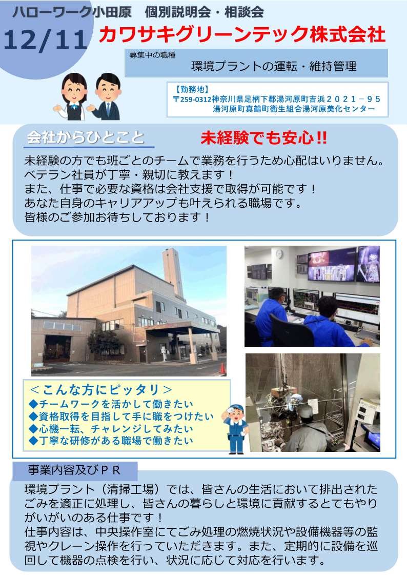 ハローワーク小田原内で説明会・相談会(ご希望の場合面接も可)を行います!