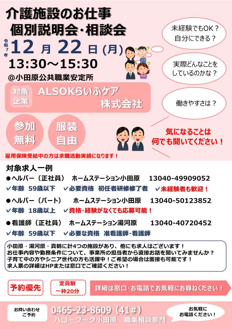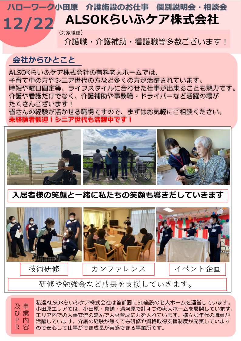 ハローワーク小田原内で説明会・相談会(希望の場合面接も可)を行います!