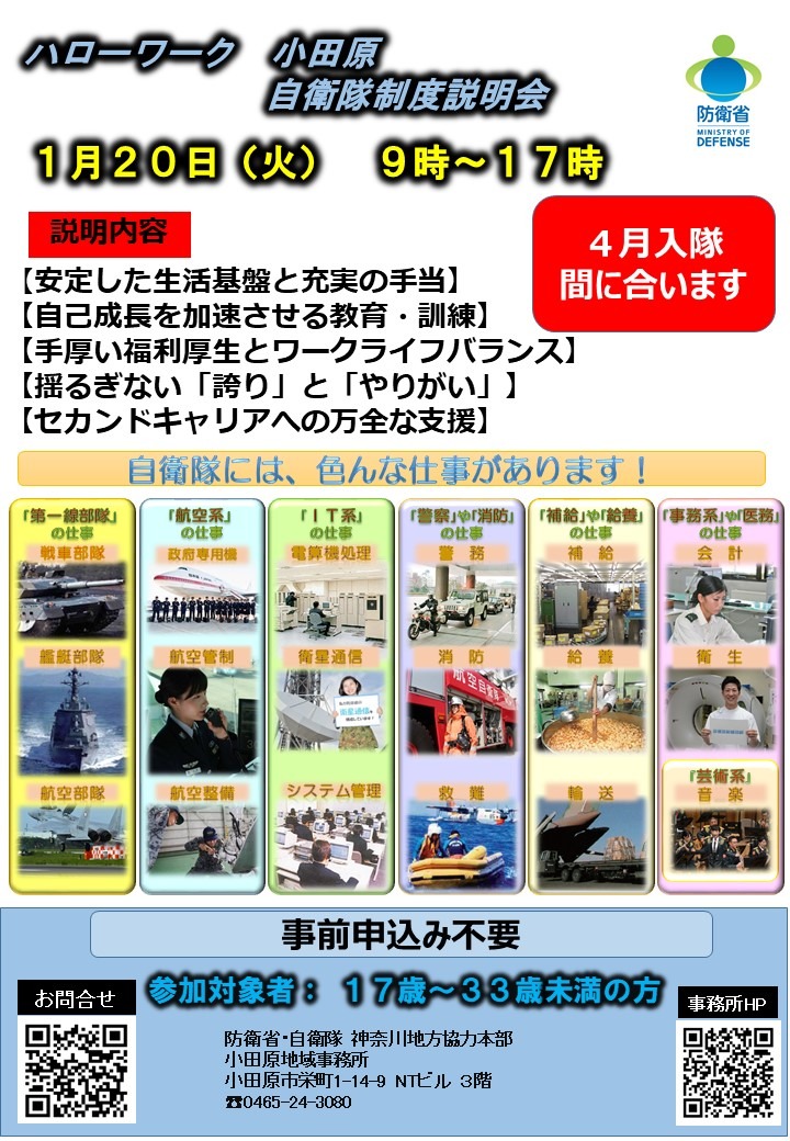 防衛省自衛隊神奈川地方協力本部 小田原地域事務所 0465-24-3080