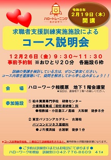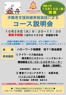 相模大野職業訓練コーナー・マザーズハローワーク相模原では申込みできませんのでご注意ください。