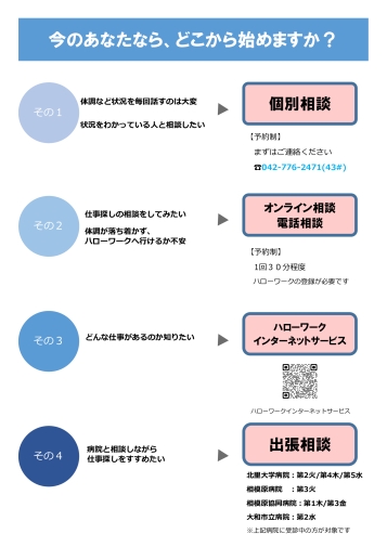 ハローワーク相模原では、がん・肝炎・糖尿病等により長期療養(経過観察・通院等)が必要な方