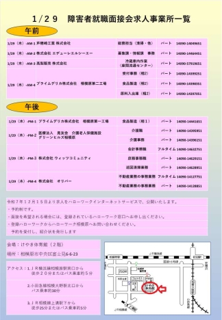 ハローワーク相模原障害者就職面接会等イベント情報