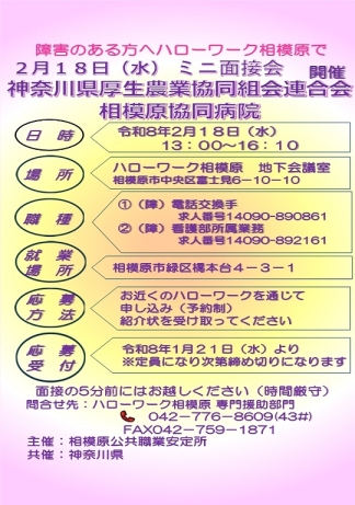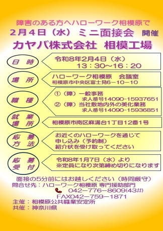 申し込み希望の方は登録されているハローワークから、ハローワーク相模原へ