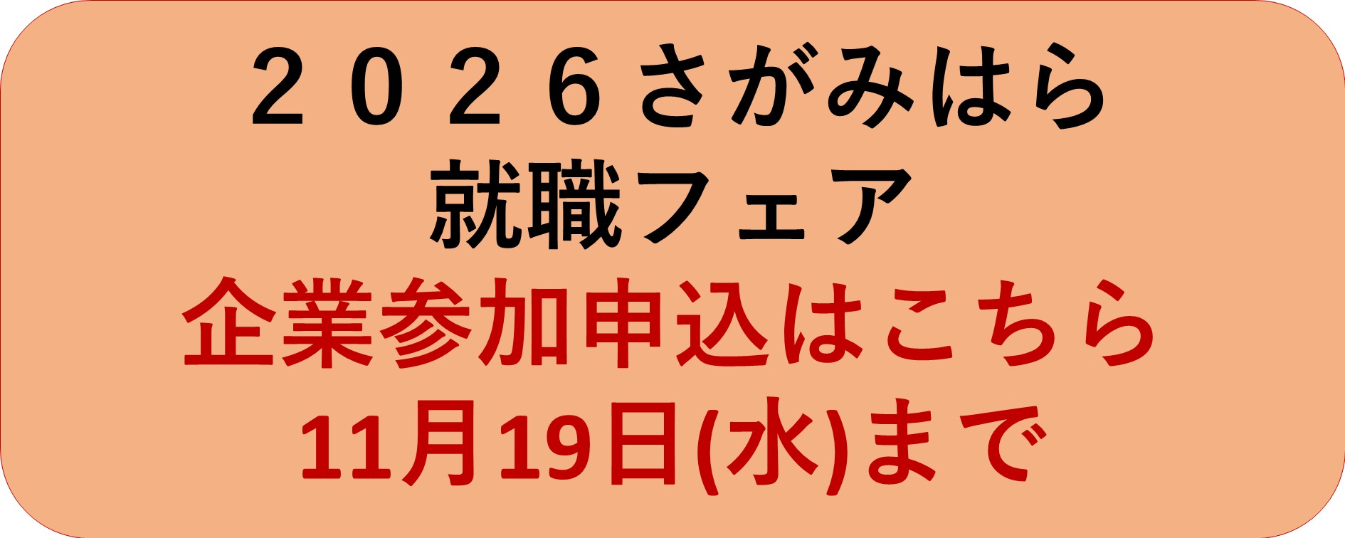 ☞ 下の「2026さがみはら就職フェア企業参加申込はこちら」をクリックしてお申し込みください。 - 6 参加申込期限 令和7年11月19日(水)17:00締め切り