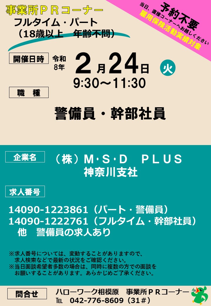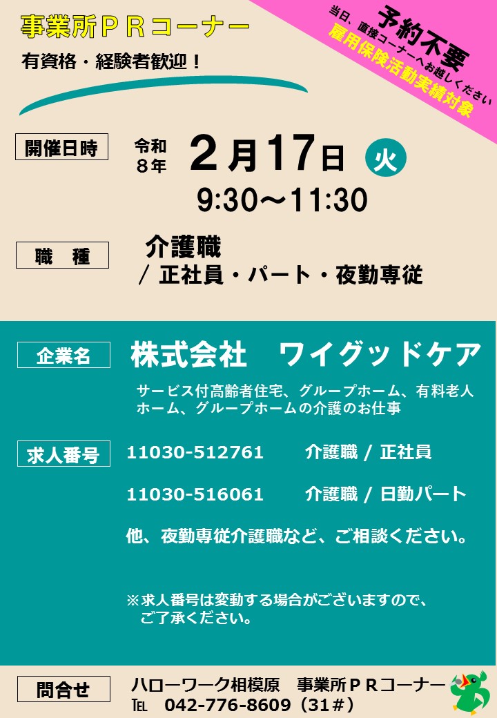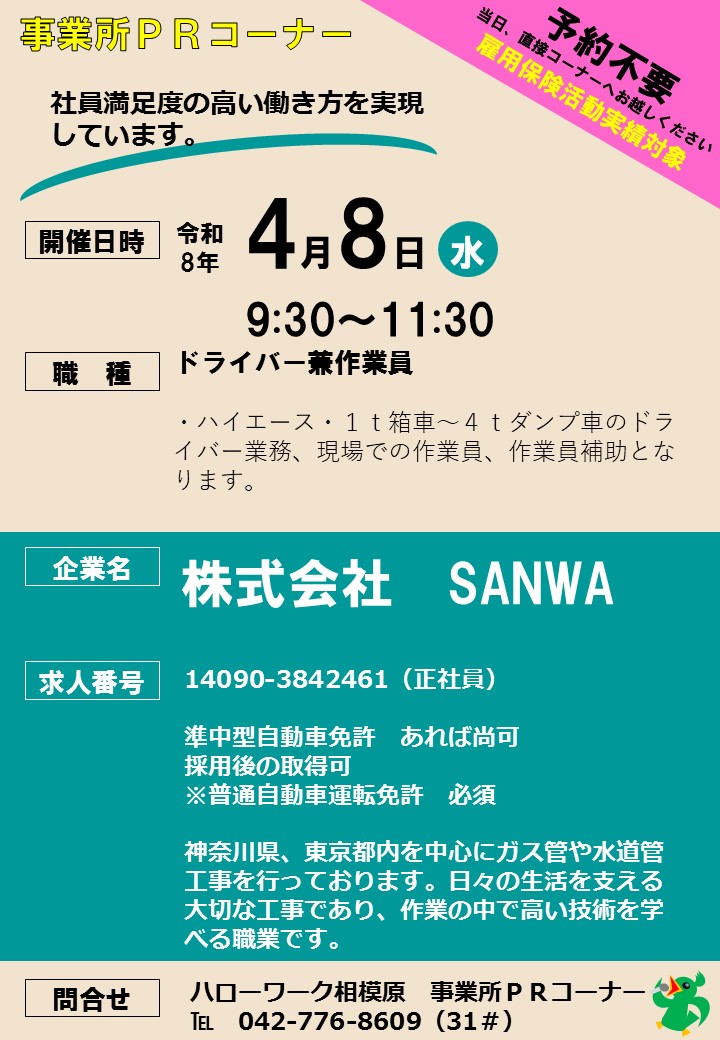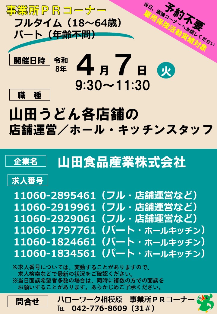 ■ハローワーク相模原 「事業所PRコーナー」開催予定