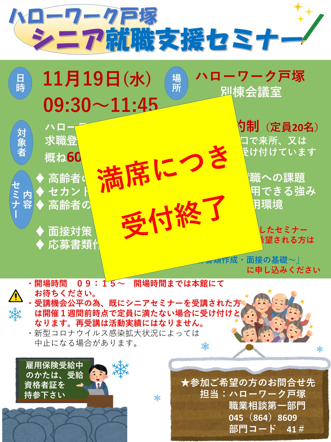 ・11月19日開催シニア就職支援セミナーの参加受付を開始しました(定員に達したため受付を終了しました)