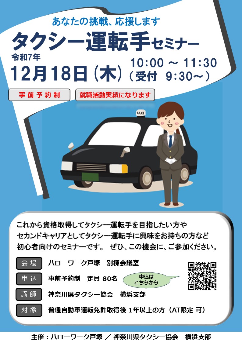 ・令和7年12月18日(木)開催タクシー運転手セミナーの参加受付を開始しています。
