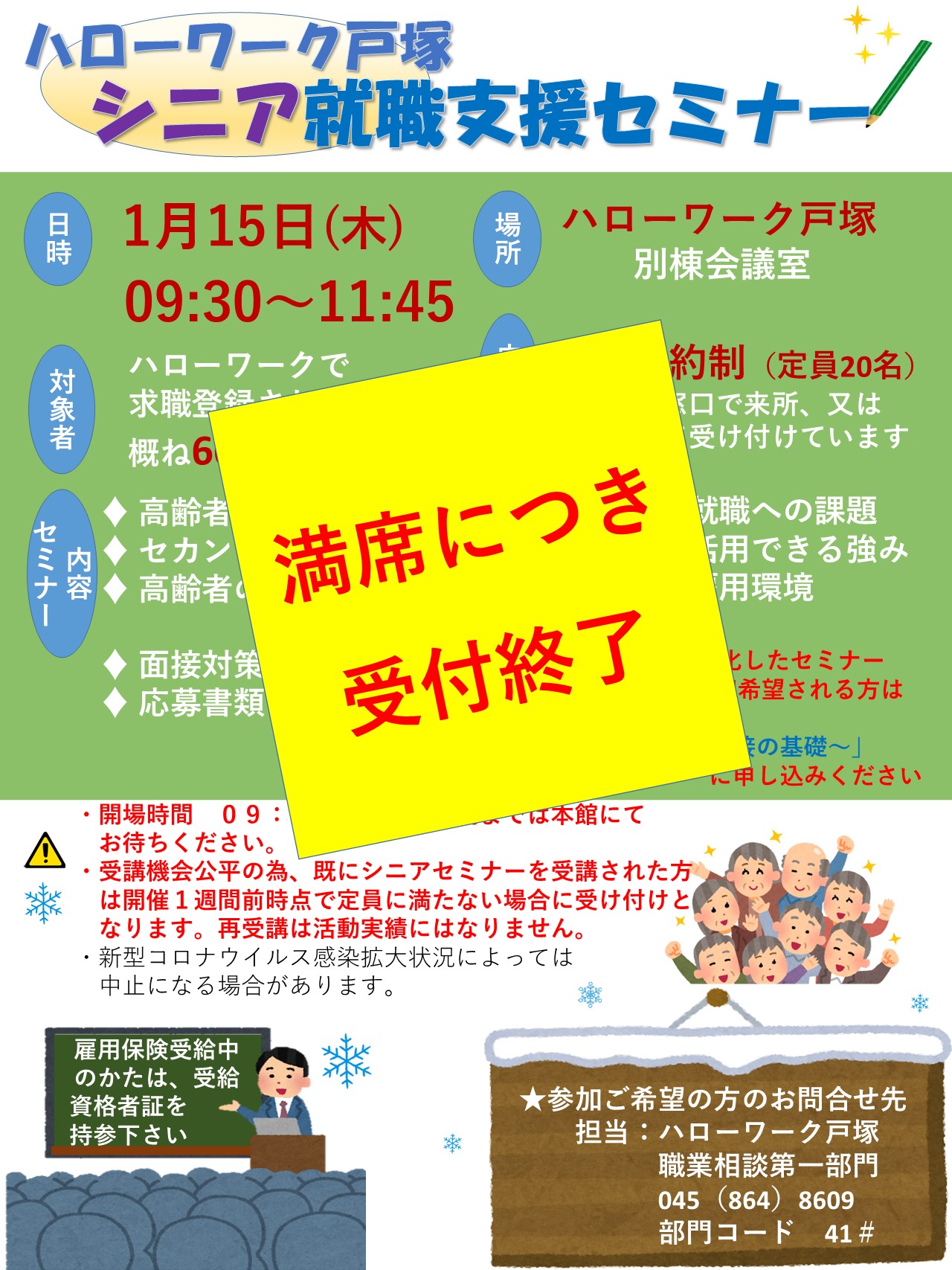 ・【シニア向け】令和8年1月15日(木)開催シニア就職支援セミナーの参加受付を開始しました