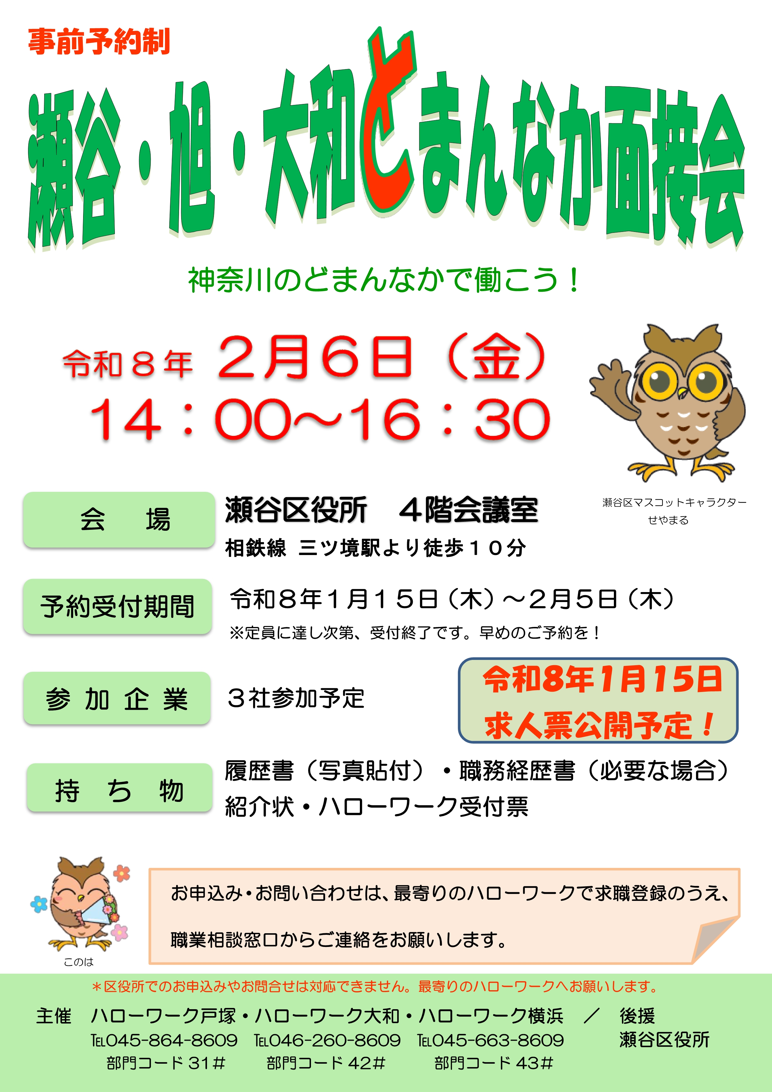 ・【1月15日~受付】2月6日開催 瀬谷・旭・大和どまんなか面接会を掲載しました