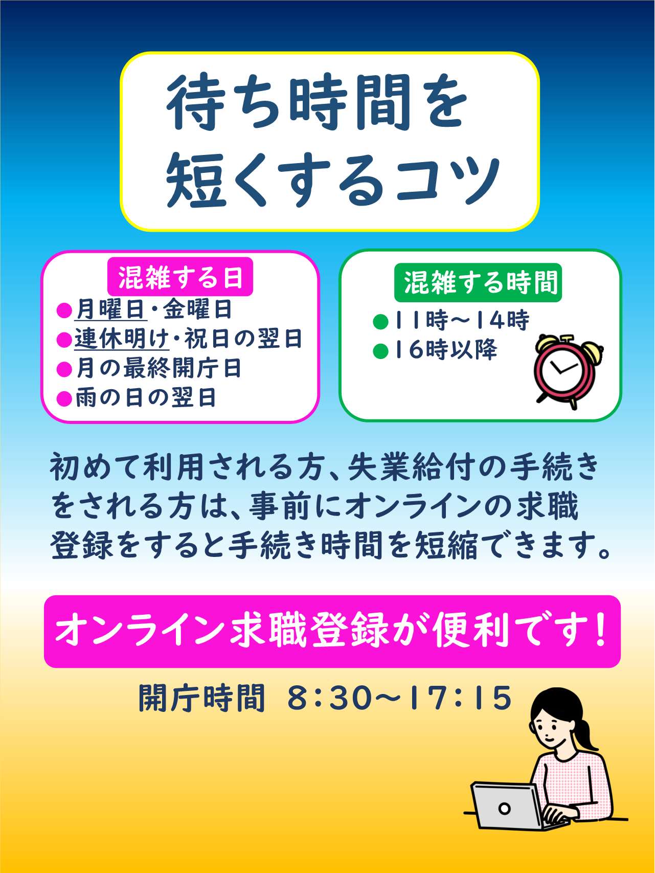 ※雇用保険適用課、事業所部門の受付時間は16時までです。