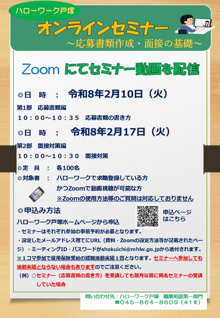 ・オンライン就職支援セミナー(2月10日・2月17日面接対策)の参加受付を開始しました