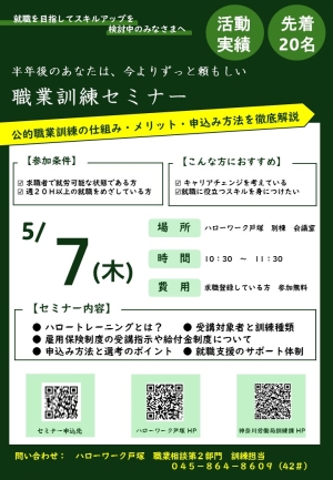 職業訓練セミナーの申込みはこちら(申込リンク)