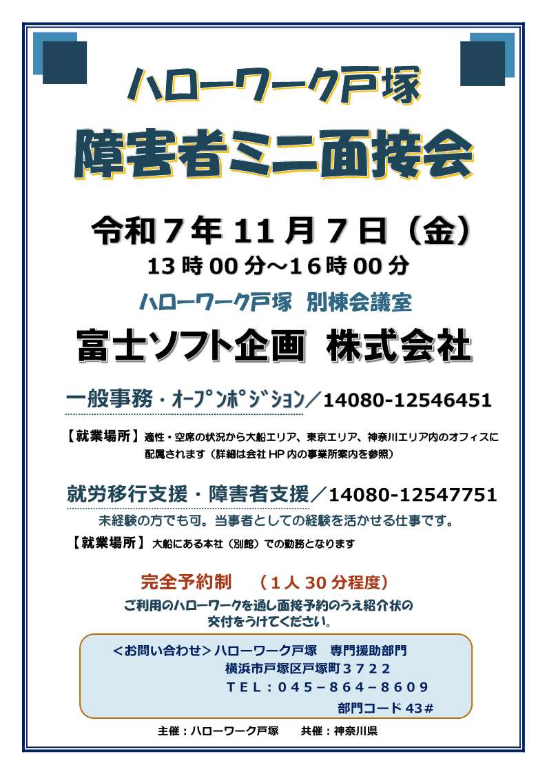 ※年間を通し障害者ミニ面接会を開催しております。日程等が決まり次第随時お知らせいたします。