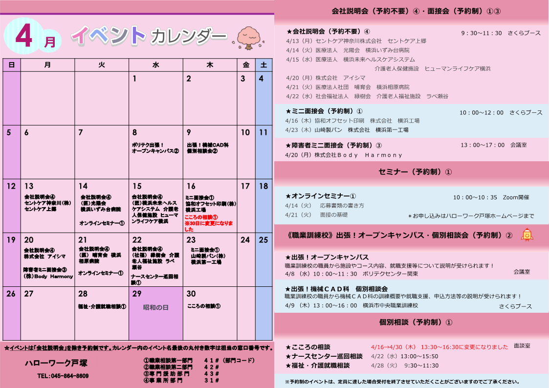 ハローワーク戸塚で行っているセミナーや面接会等のイベント情報を掲載しています。
