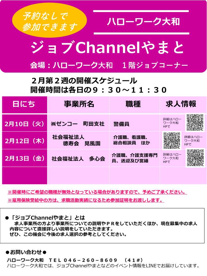 ☆求人一覧:2月10日(火)開催分