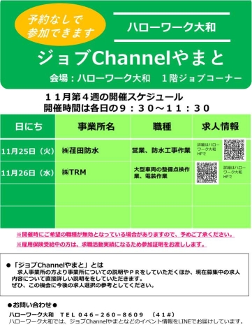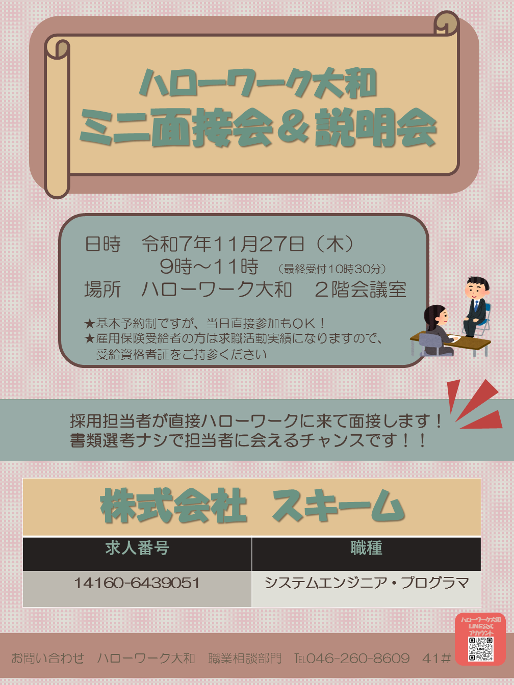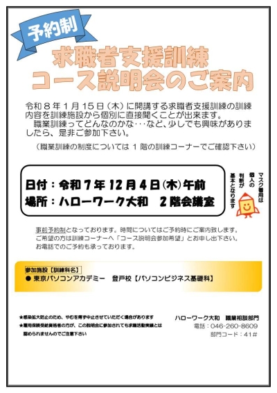 *オンラインセミナーの利用を申し込んだ場合は、ハローワーク大和の