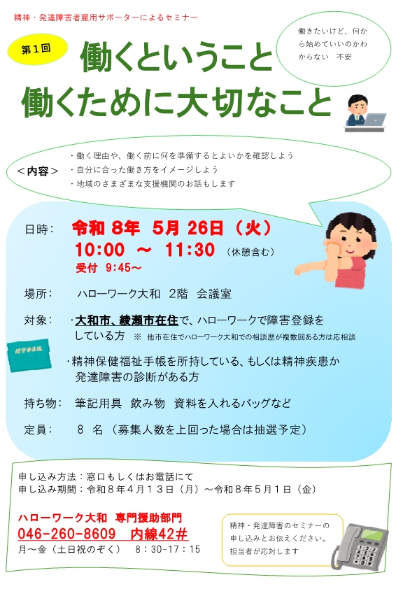 精神・発達障害者雇用サポーターによるセミナーを行います。