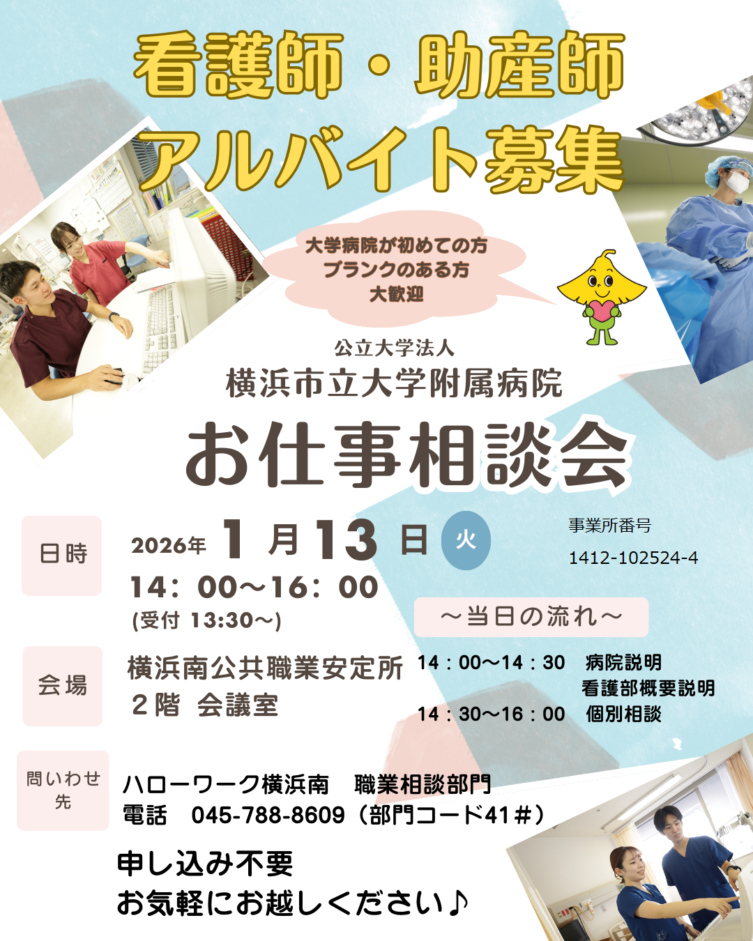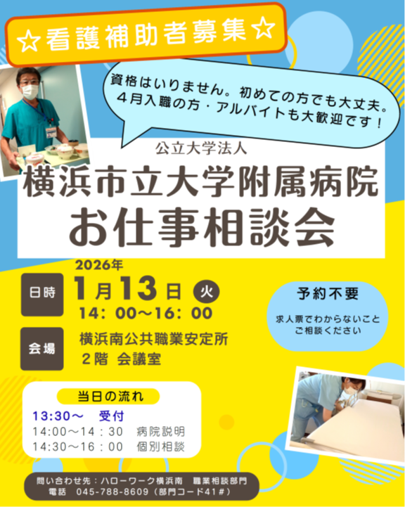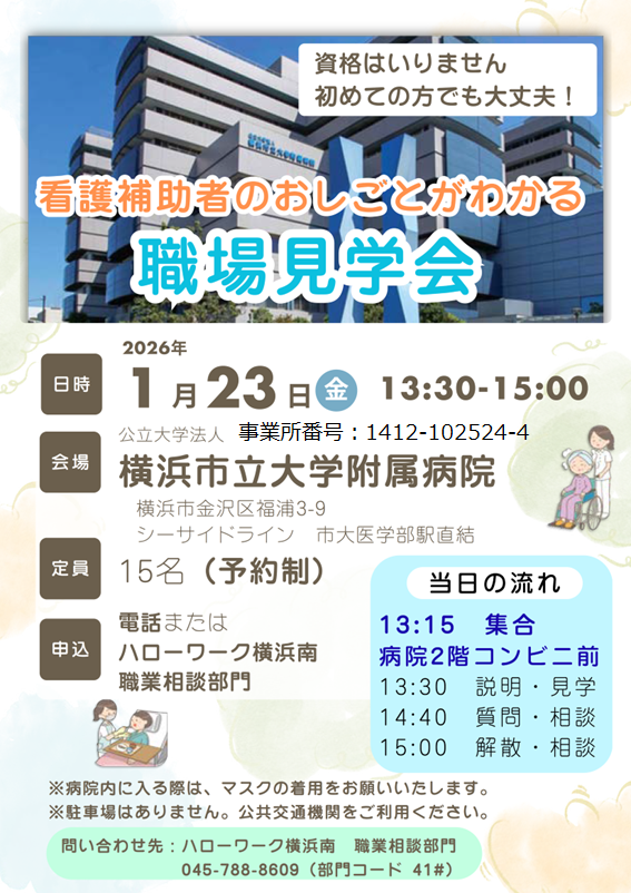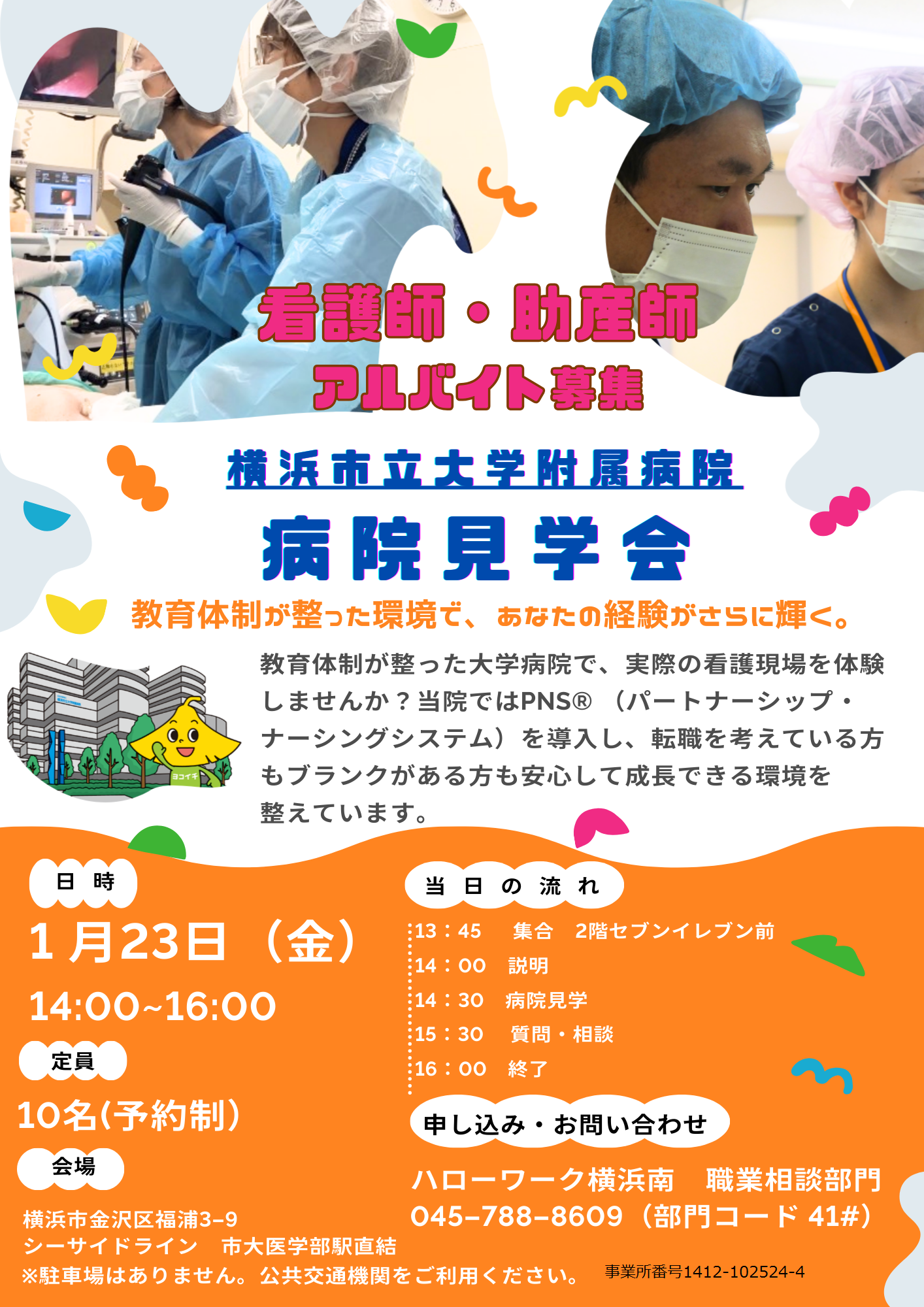 看護補助の見学会と看護師・助産師の見学会の時間が異なるためご注意ください。