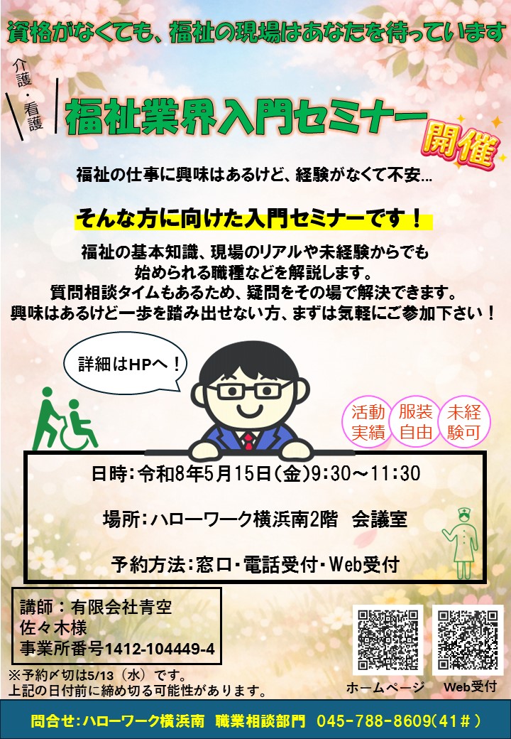 福祉デビューを応援します。最初の一歩はこのセミナーから!