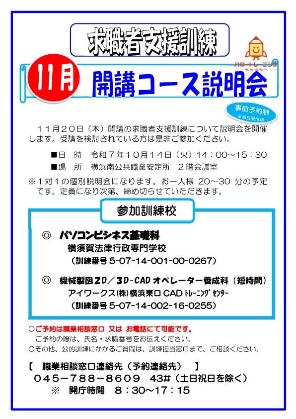 求職者支援訓練コース説明会のお知らせ