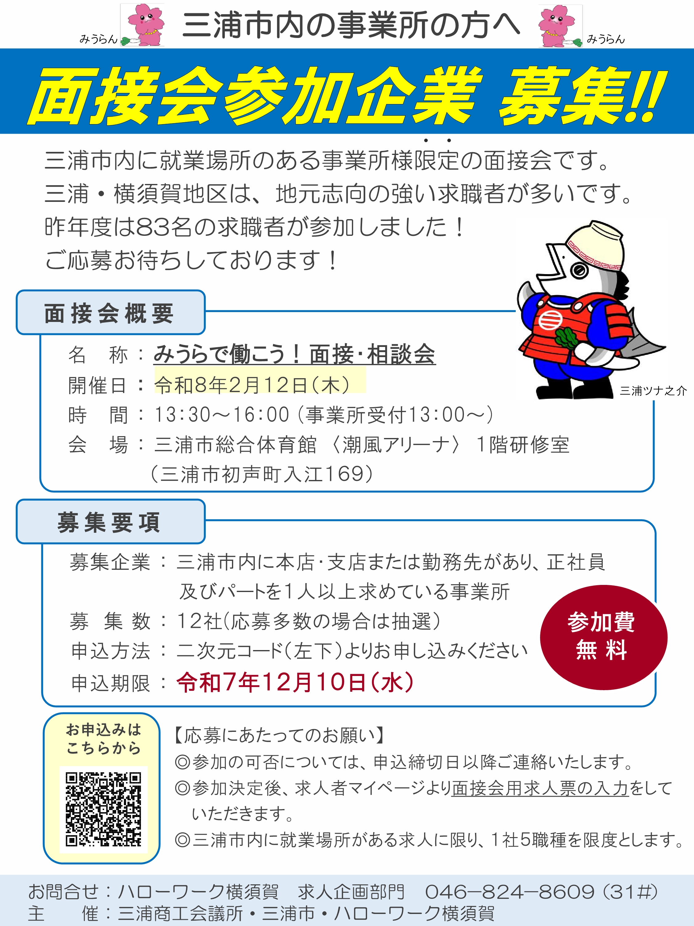 みうらで働こう!面接・相談会 参加企業募集中!《要申し込み》