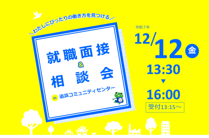 ご案内チラシはこちら⇒就職面接&相談会in追浜コミュニティセンターご案内【PDF】