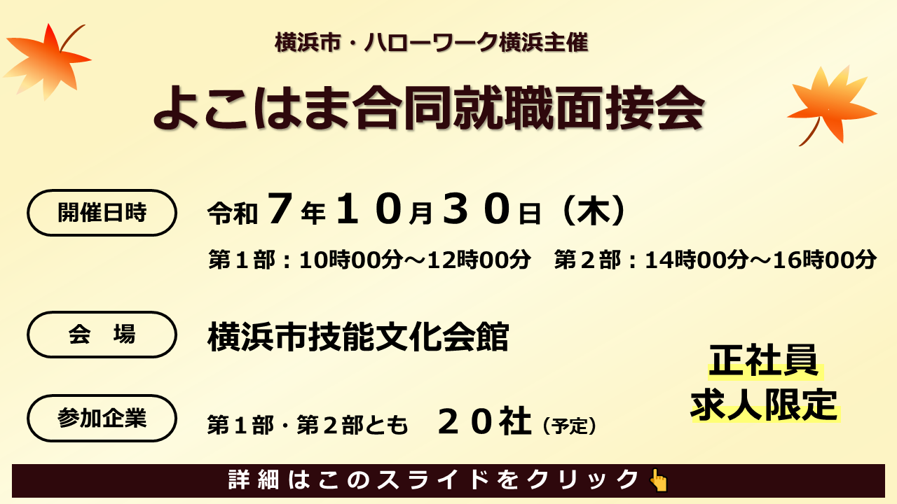令和7年度第1回よこはま合同就職面接会を開催いたします!【10月30日(木)】