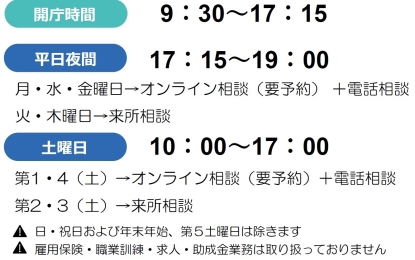 ハローワークプラザよこはまは、国・神奈川県・横浜市が連携して『しごと』にかかわる様々なサービスを提供する『かながわ総合しごと館 スマイルワーク』の一施設です。