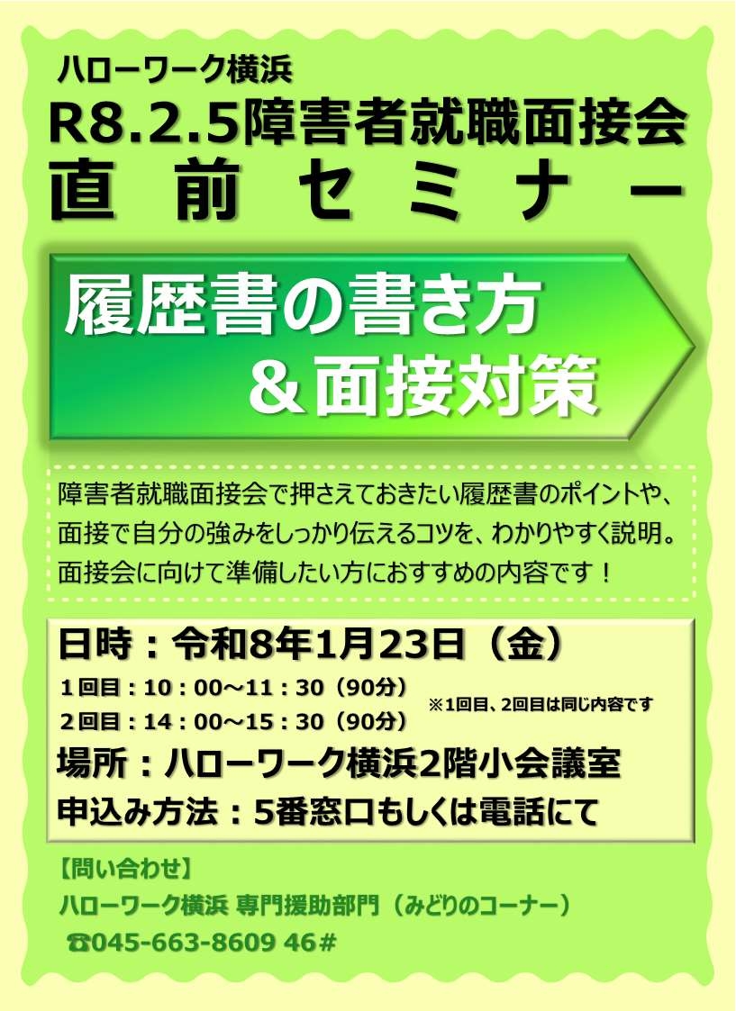 ★就労支援セミナー 印刷はこちら(PDF) 印刷はこちら(PDF) ★ハローワークよこはま障害者就職面接会 印刷はこちら(PDF) 印刷はこちら(PDF) 印刷はこちら(PDF) 印刷はこちら(PDF) ★障害者ミニ面接会 印刷はこちら(PDF) 印刷はこちら(PDF) 印刷はこちら(PDF)